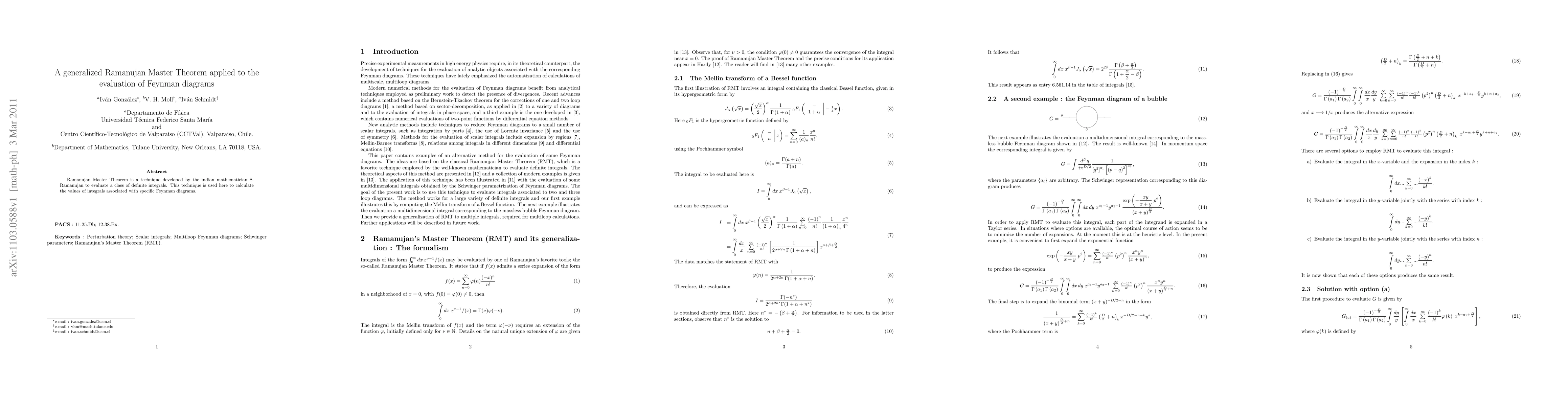 Summary: The Ramanujan Master Theorem is applied to evaluate integrals associated with specific Feynman diagrams, leveraging the technique developed by mathematician S. Ramanujan to handle complex definite integrals.