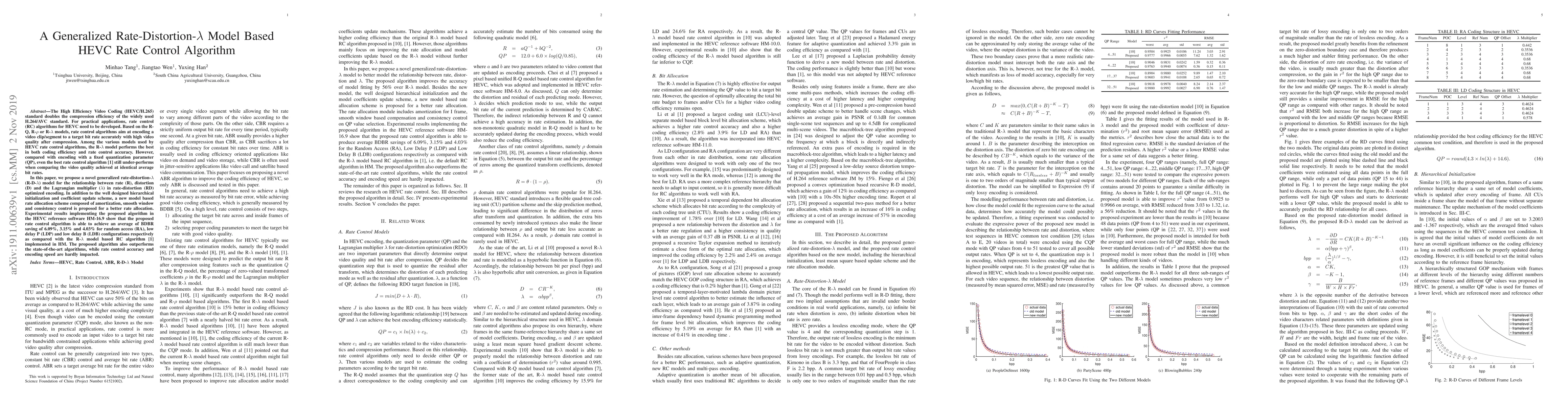 This paper proposes a generalized rate-distortion-${\lambda}$ (R-D-${\lambda}$) model for HEVC rate control, enhancing the R-${\lambda}$ model with a new rate allocation scheme. Experimental results show an average BDBR saving of 6.09%, 3.15%, and 4.03% for RA, LDP, and LDB configurations respectively, outperforming existing algorithms with minimal impact on rate control accuracy and speed.
