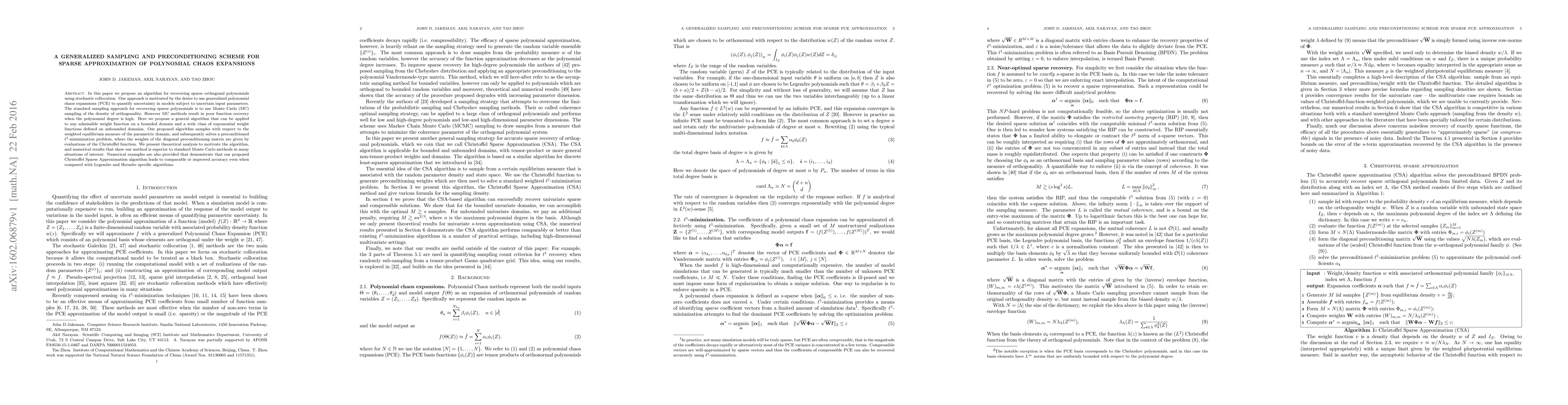 In this paper we propose an algorithm for recovering sparse orthogonal polynomials using stochastic collocation. Our approach is motivated by the desire to use generalized polynomial chaos expansions (PCE) to quantify uncertainty in models subject to uncertain input parameters. The standard sampling approach for recovering sparse polynomials is to use Monte Carlo (MC) sampling of the density of orthogonality. However MC methods result in poor function recovery when the polynomial degree is high. Here we propose a general algorithm that can be applied to any admissible weight function on a bounded domain and a wide class of exponential weight functions defined on unbounded domains. Our proposed algorithm samples with respect to the weighted equilibrium measure of the parametric domain, and subsequently solves a preconditioned $\ell^1$-minimization problem, where the weights of the diagonal preconditioning matrix are given by evaluations of the Christoffel function. We present theoretical analysis to motivate the algorithm, and numerical results that show our method is superior to standard Monte Carlo methods in many situations of interest. Numerical examples are also provided that demonstrate that our proposed Christoffel Sparse Approximation algorithm leads to comparable or improved accuracy even when compared with Legendre and Hermite specific algorithms.