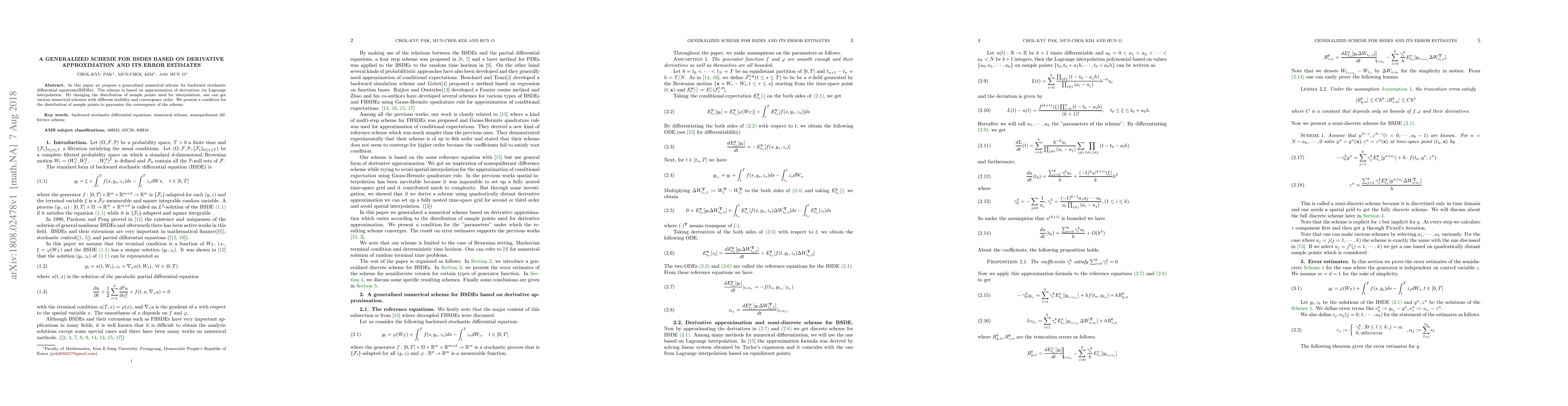 In this paper we propose a generalized numerical scheme for backward stochastic differential equations(BSDEs). The scheme is based on approximation of derivatives via Lagrange interpolation. By changing the distribution of sample points used for interpolation, one can get various numerical schemes with different stability and convergence order. We present a condition for the distribution of sample points to guarantee the convergence of the scheme.