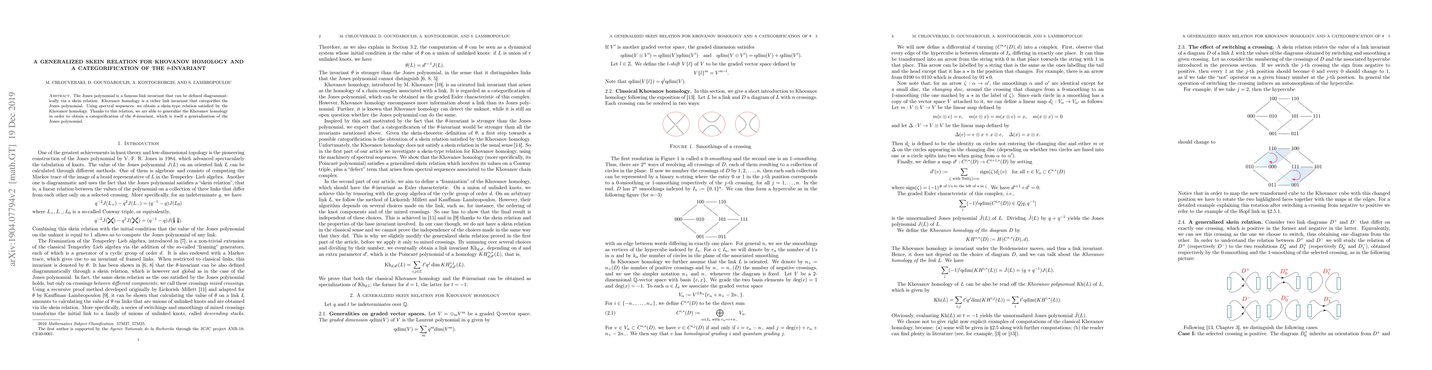 This paper establishes a generalized skein relation for Khovanov homology using spectral sequences, which allows for a categorification of the $\theta$-invariant, extending the framework beyond the Jones polynomial.