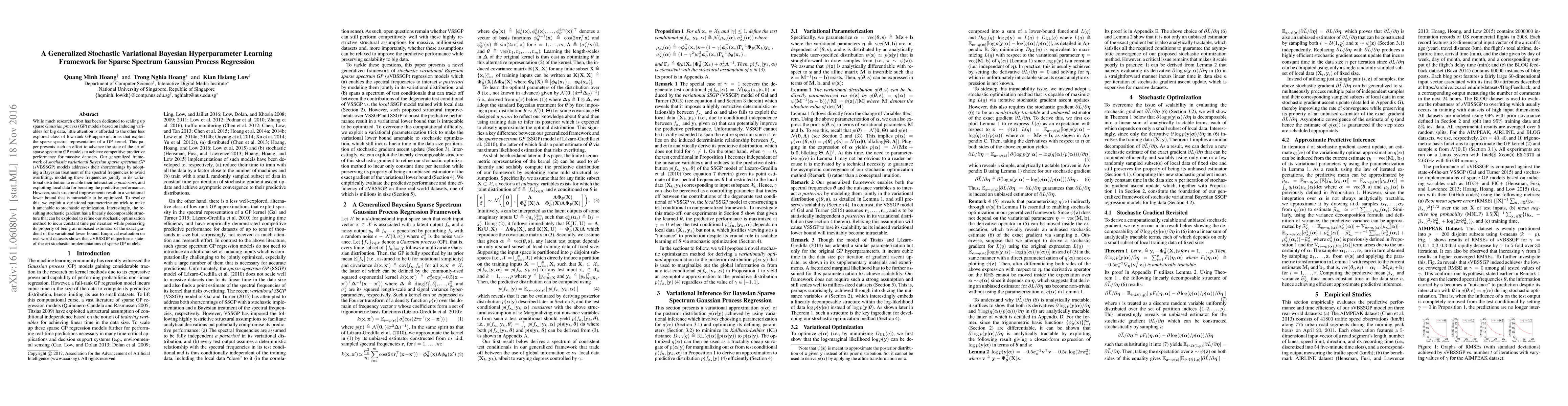 This paper introduces a generalized stochastic variational Bayesian framework for sparse spectrum Gaussian Process Regression, addressing overfitting and improving predictive performance for large datasets. The proposed sVBSSGP model leverages a variational parameterization trick to enable efficient stochastic optimization, achieving competitive results against other state-of-the-art methods.