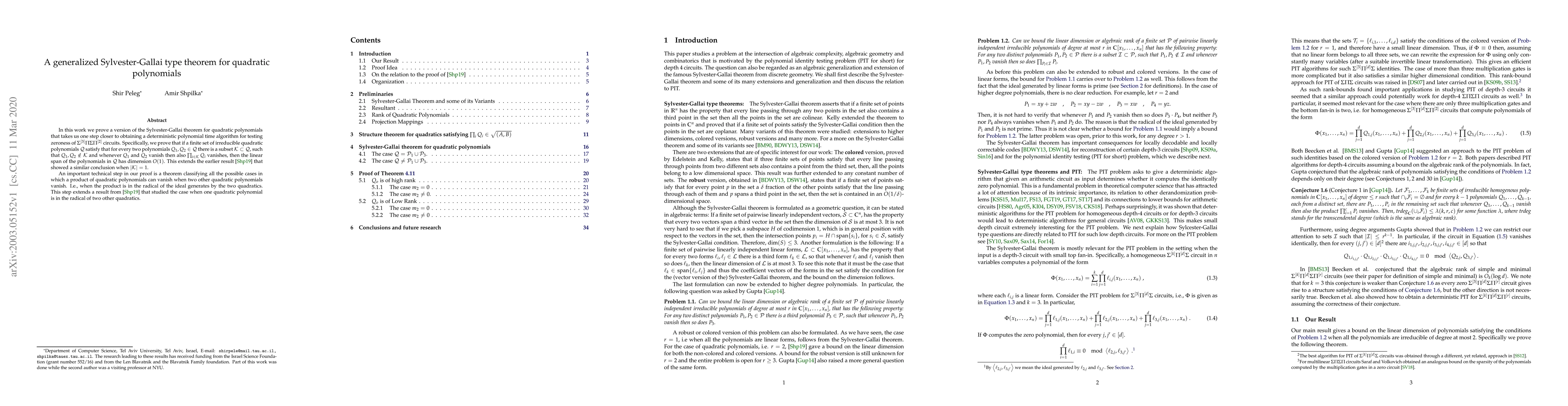 In this work we prove a version of the Sylvester-Gallai theorem for quadratic polynomials that takes us one step closer to obtaining a deterministic polynomial time algorithm for testing zeroness of $\Sigma^{[3]}\Pi\Sigma\Pi^{[2]}$ circuits. Specifically, we prove that if a finite set of irreducible quadratic polynomials $\mathcal{Q}$ satisfy that for every two polynomials $Q_1,Q_2\in \mathcal{Q}$ there is a subset $\mathcal{K}\subset \mathcal{Q}$, such that $Q_1,Q_2 \notin \mathcal{K}$ and whenever $Q_1$ and $Q_2$ vanish then also $\prod_{i\in \mathcal{K}} Q_i$ vanishes, then the linear span of the polynomials in $\mathcal{Q}$ has dimension $O(1)$. This extends the earlier result [Shpilka19] that showed a similar conclusion when $|\mathcal{K}| = 1$. An important technical step in our proof is a theorem classifying all the possible cases in which a product of quadratic polynomials can vanish when two other quadratic polynomials vanish. I.e., when the product is in the radical of the ideal generates by the two quadratics. This step extends a result from [Shpilka19]that studied the case when one quadratic polynomial is in the radical of two other quadratics.
