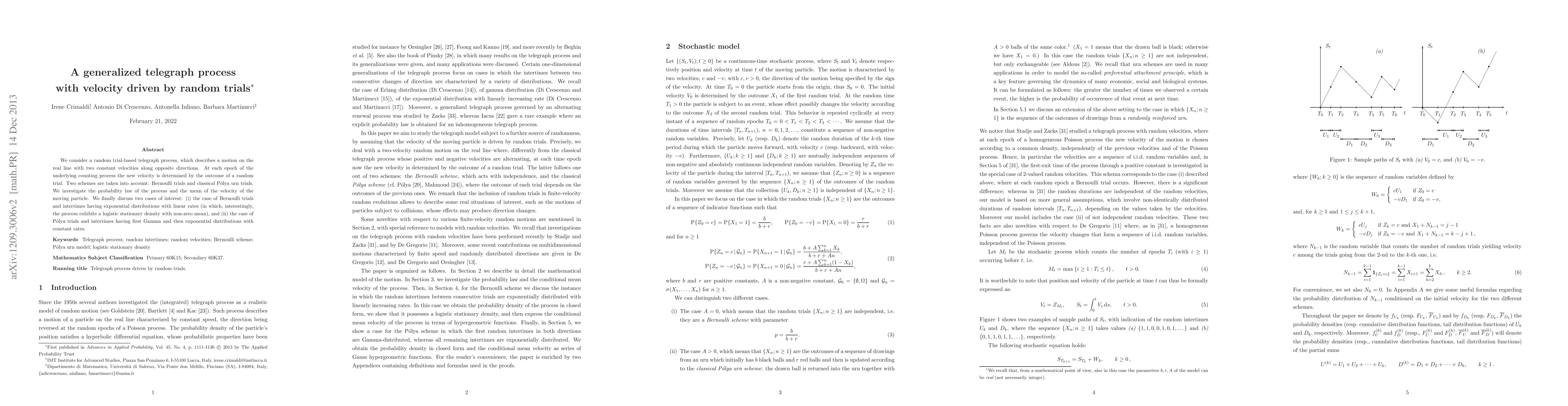 A new random trial-based telegraph process models motion with two velocities driven by random trials, with different outcomes affecting velocity in two scenarios.