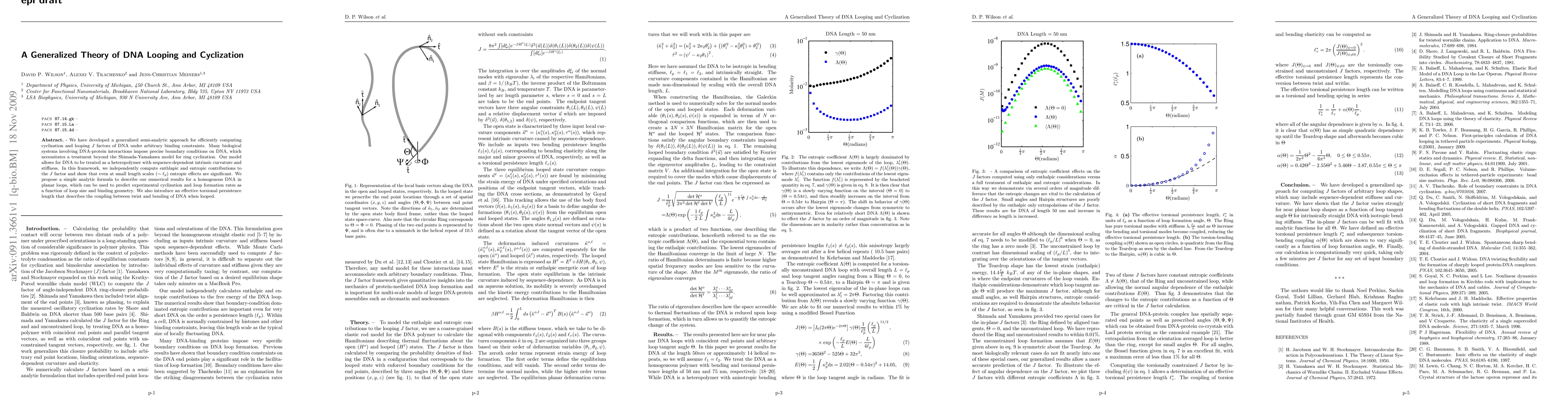 This paper presents a generalized semi-analytic model for DNA cyclization and looping, accounting for sequence-dependent curvature and stiffness, and demonstrates the significance of entropic effects at small length scales. The model introduces an effective torsional persistence length and provides an analytic formula for predicting cyclization and loop formation rates.