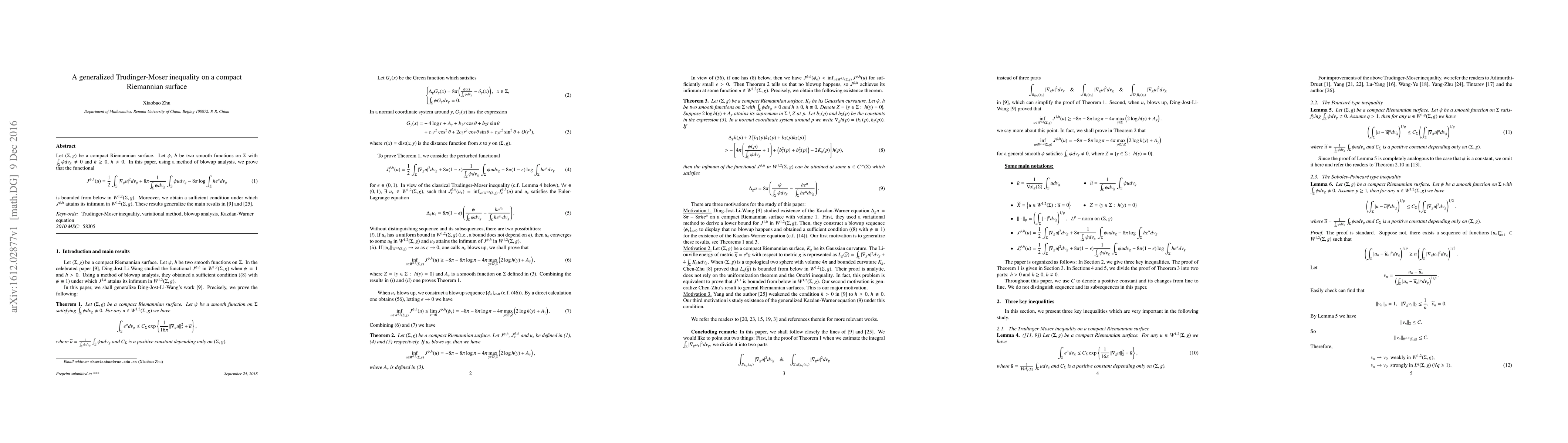 A generalized Trudinger-Moser inequality is proven for a compact Riemannian surface, showing that a specific functional attains its infimum under certain conditions, with implications for the study of harmonic maps on these surfaces.