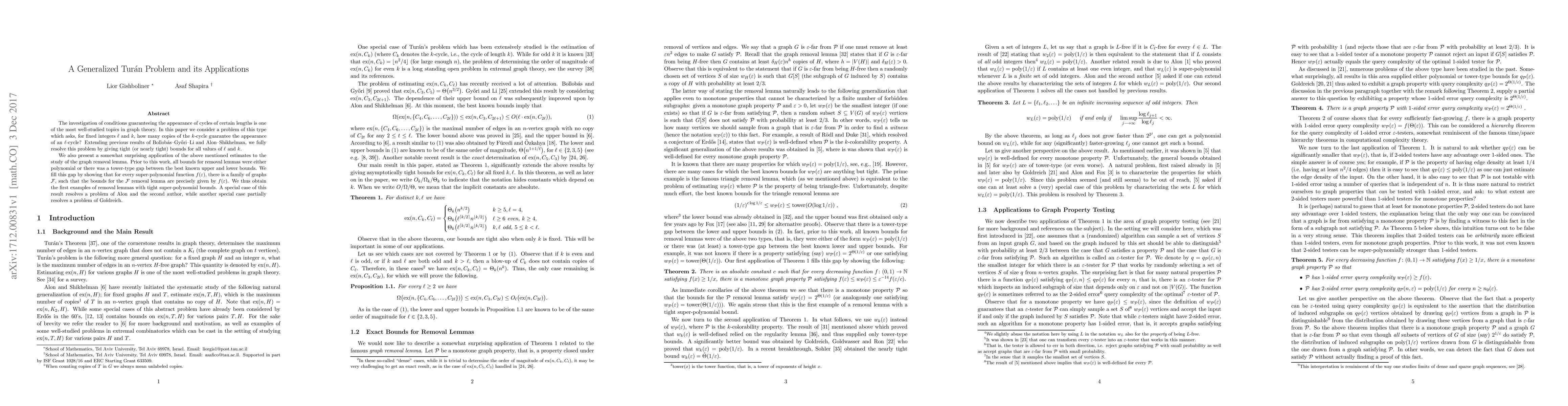 The investigation of conditions guaranteeing the appearance of cycles of certain lengths is one of the most well-studied topics in graph theory. In this paper we consider a problem of this type which asks, for fixed integers ${\ell}$ and $k$, how many copies of the $k$-cycle guarantee the appearance of an $\ell$-cycle? Extending previous results of Bollob\'as--Gy\H{o}ri--Li and Alon--Shikhelman, we fully resolve this problem by giving tight (or nearly tight) bounds for all values of $\ell$ and $k$. We also present a somewhat surprising application of the above mentioned estimates to the study of the graph removal lemma. Prior to this work, all bounds for removal lemmas were either polynomial or there was a tower-type gap between the best known upper and lower bounds. We fill this gap by showing that for every super-polynomial function $f(\varepsilon)$, there is a family of graphs ${\cal F}$, such that the bounds for the ${\cal F}$ removal lemma are precisely given by $f(\varepsilon)$. We thus obtain the first examples of removal lemmas with tight super-polynomial bounds. A special case of this result resolves a problem of Alon and the second author, while another special case partially resolves a problem of Goldreich.