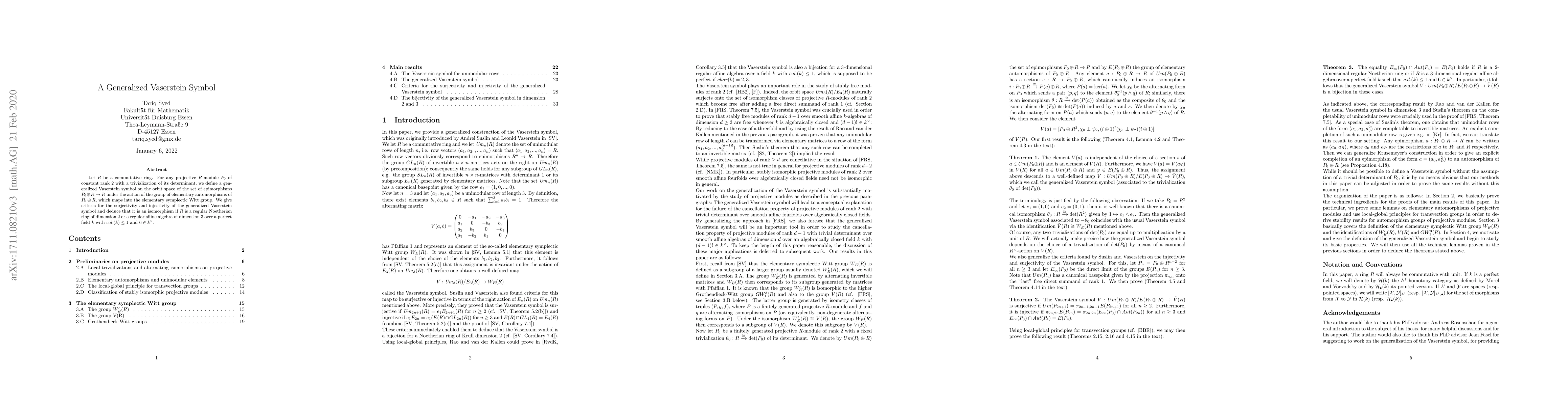 This paper defines a generalized Vaserstein symbol for projective modules over commutative rings, mapping it into the elementary symplectic Witt group, and establishes conditions for its surjectivity and injectivity, proving it is an isomorphism under specific ring conditions.