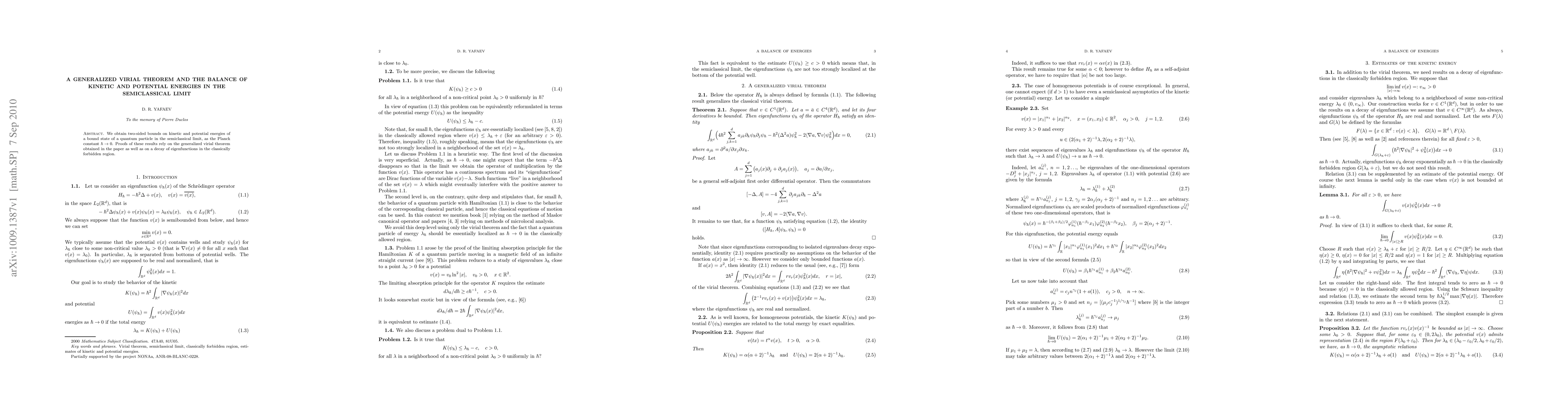 We obtain two-sided bounds on kinetic and potential energies of a bound state of a quantum particle in the semiclassical limit, as the Planck constant $\hbar\ri 0$. Proofs of these results rely on the generalized virial theorem obtained in the paper as well as on a decay of eigenfunctions in the classically forbidden region.