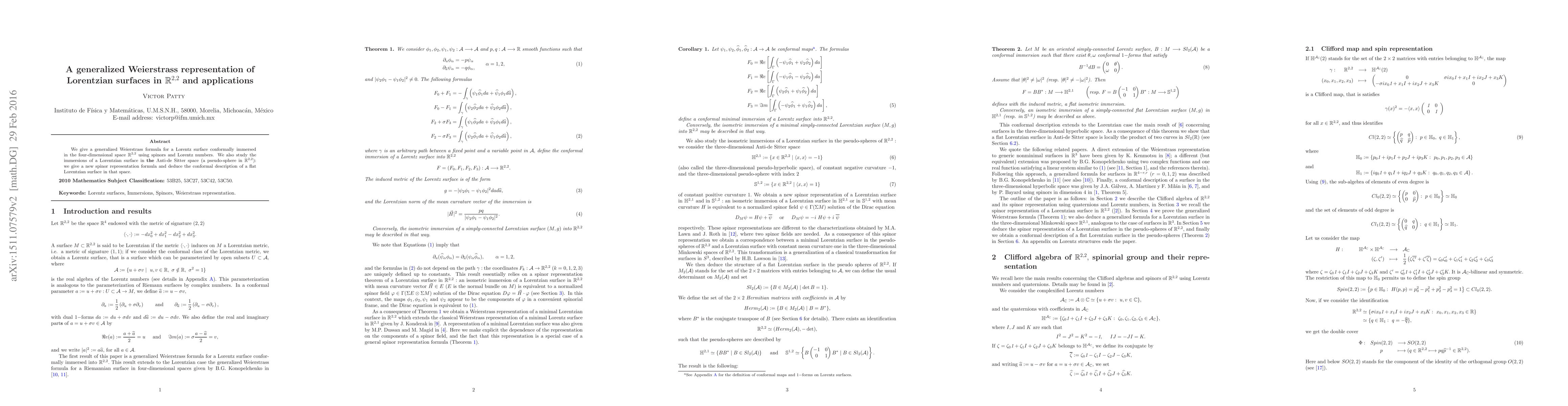 Summary: The paper presents a generalized Weierstrass formula for Lorentzian surfaces in $\mathbb{R}^{2,2}$ using spinors, and introduces a new spinor representation for immersions in Anti-de Sitter space, along with a conformal description of flat Lorentzian surfaces.