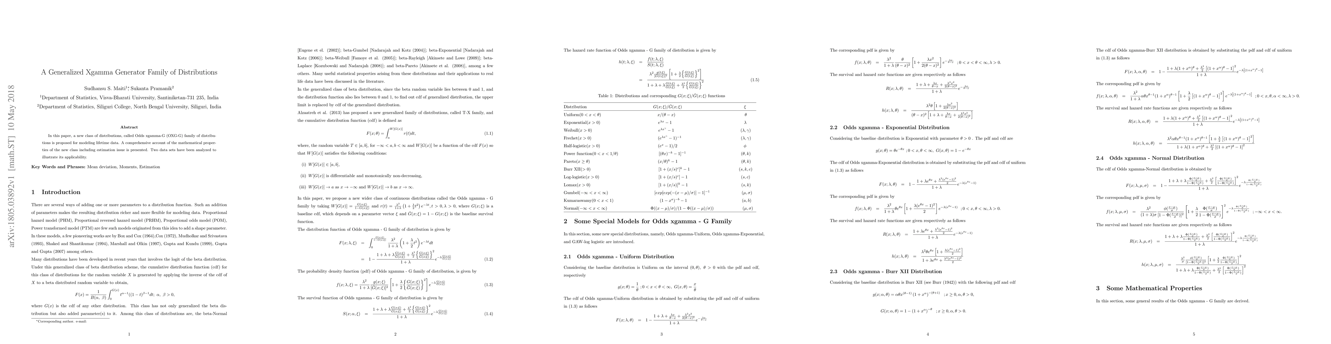 In this paper, a new class of distributions, called Odds xgamma-G (OXG-G) family of distribu- tions is proposed for modeling lifetime data. A comprehensive account of the mathematical proper- ties of the new class including estimation issue is presented. Two data sets have been analyzed to illustrate its applicability.