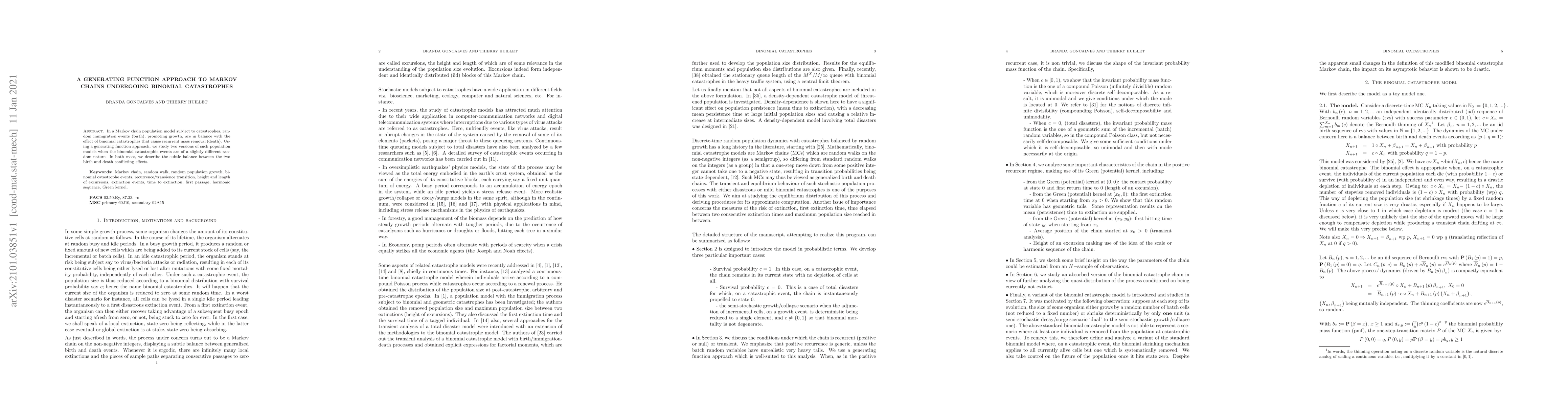 Researchers model population growth with Markov chains that balance birth events with binomial catastrophes, finding a subtle balance between the two opposing effects.