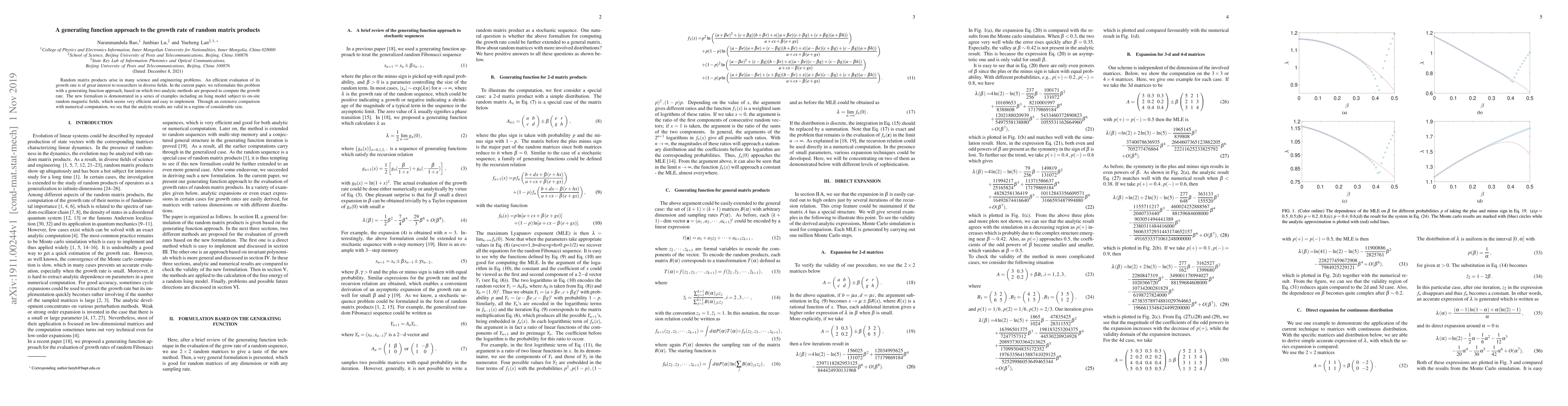 Random matrix products arise in many science and engineering problems. An efficient evaluation of its growth rate is of great interest to researchers in diverse fields. In the current paper, we reformulate this problem with a generating function approach, based on which two analytic methods are proposed to compute the growth rate. The new formalism is demonstrated in a series of examples including an Ising model subject to on-site random magnetic fields, which seems very efficient and easy to implement. Through an extensive comparison with numerical computation, we see that the analytic results are valid in a regime of considerable size.