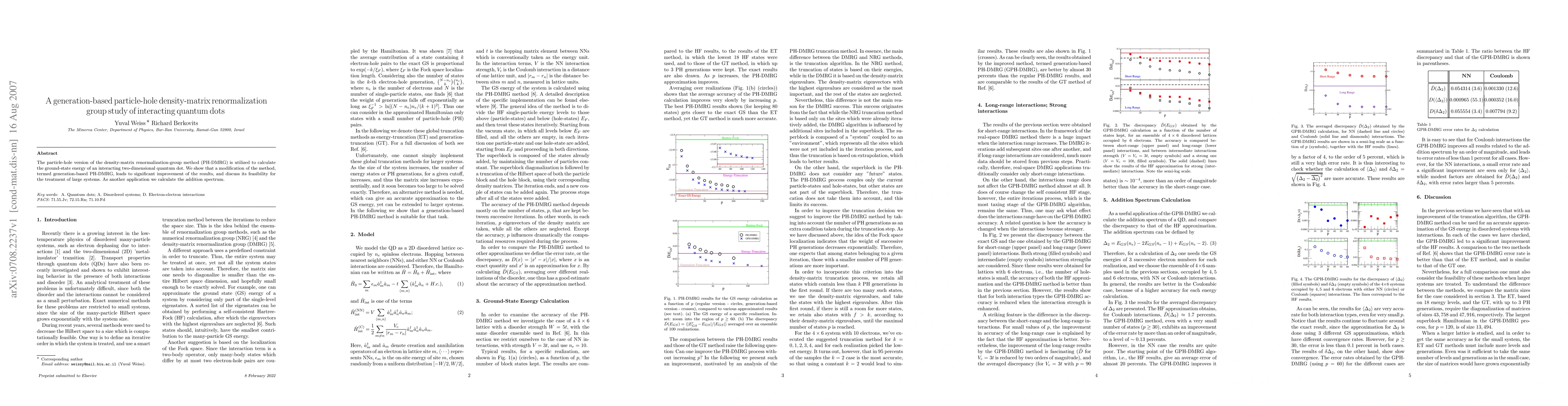 The particle-hole version of the density-matrix renormalization-group method (PH-DMRG) is utilized to calculate the ground-state energy of an interacting two-dimensional quantum dot. We show that a modification of the method, termed generation-based PH-DMRG, leads to significant improvement of the results, and discuss its feasibility for the treatment of large systems. As another application we calculate the addition spectrum.