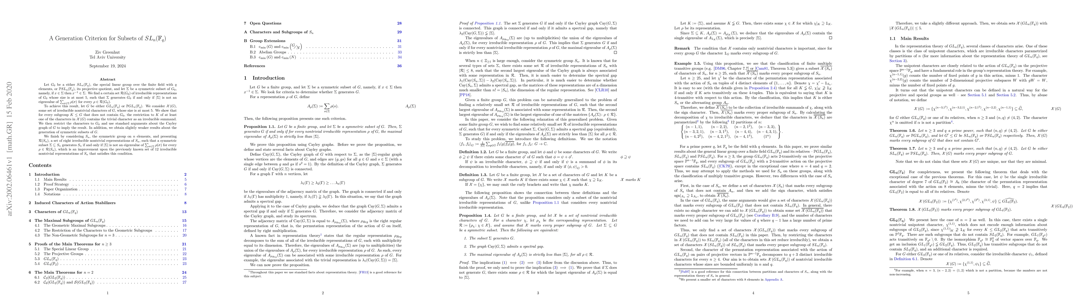Researchers developed a criterion to determine if a symmetric subset of SL_n(q) generates the group, based on the eigenvalues of character sums, and applied this to special linear groups and the symmetric group S_n.
