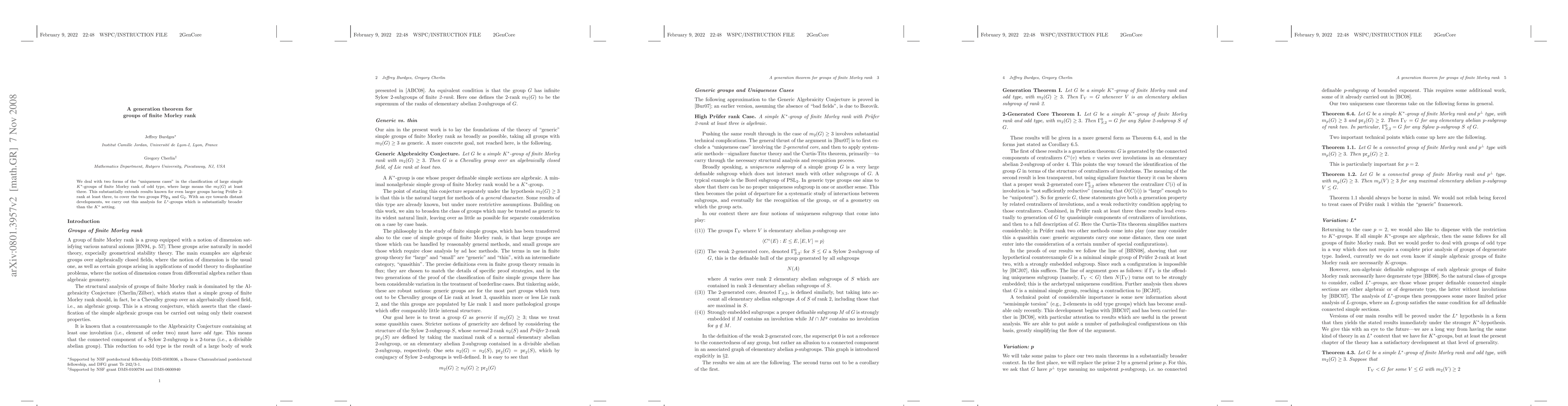 Title: A generation theorem for groups of finite Morley rank Summary: The paper extends results on the classification of large simple $K^*$-groups of finite Morley rank, specifically addressing "uniqueness cases" for $\PSp_4$ and $\G_2$, and explores broader $L^*$-group contexts.