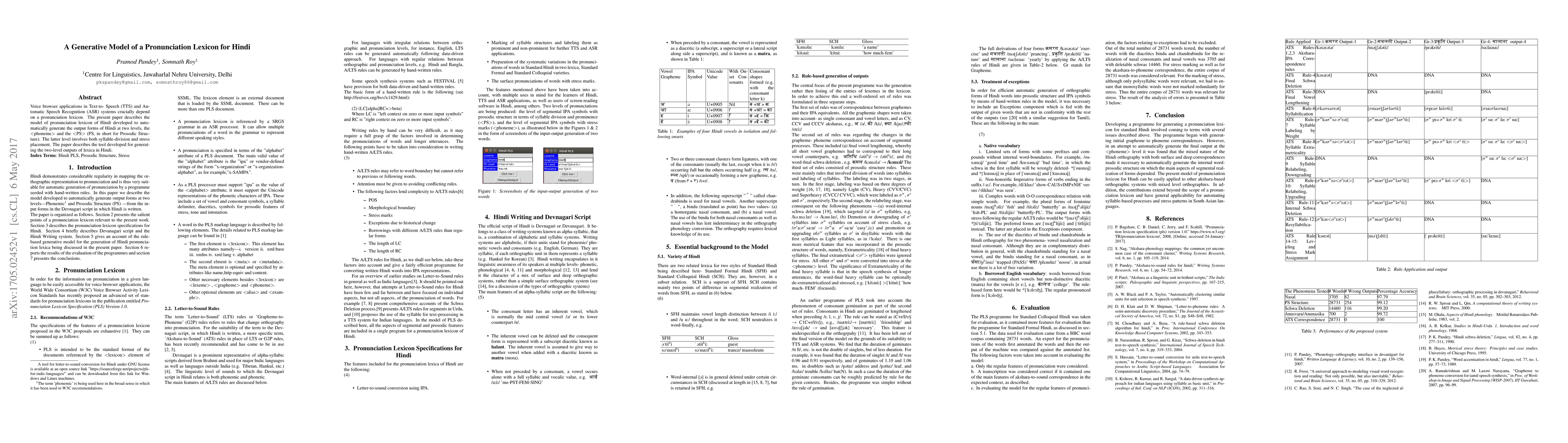to automatically generate the output forms of Hindi at two levels, the