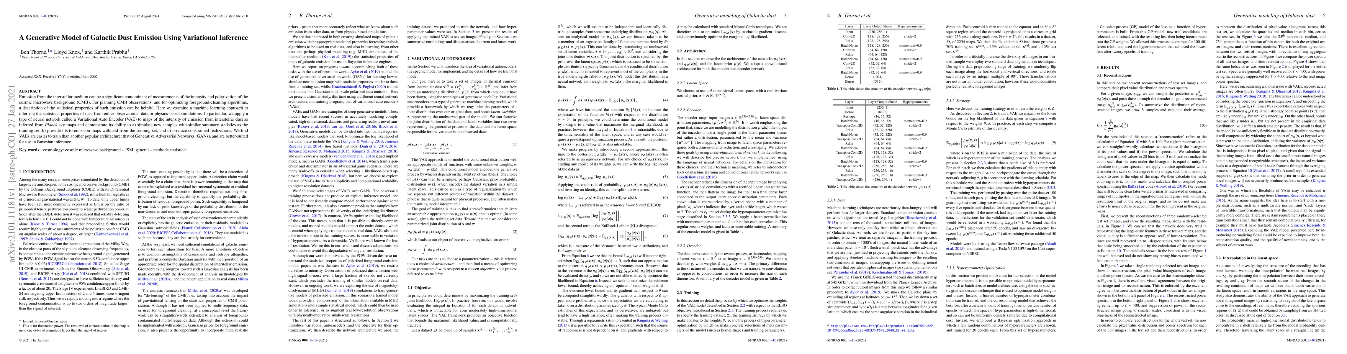Emission from the interstellar medium can be a significant contaminant of measurements of the intensity and polarization of the cosmic microwave background (CMB). For planning CMB observations, and for optimizing foreground-cleaning algorithms, a description of the statistical properties of such emission can be helpful. Here we examine a machine learning approach to inferring the statistical properties of dust from either observational data or physics-based simulations. In particular, we apply a type of neural network called a Variational Auto Encoder (VAE) to maps of the intensity of emission from interstellar dust as inferred from Planck sky maps and demonstrate its ability to a) simulate new samples with similar summary statistics as the training set, b) provide fits to emission maps withheld from the training set, and c) produce constrained realizations. We find VAEs are easier to train than another popular architecture: that of Generative Adversarial Networks (GANs), and are better-suited for use in Bayesian inference.