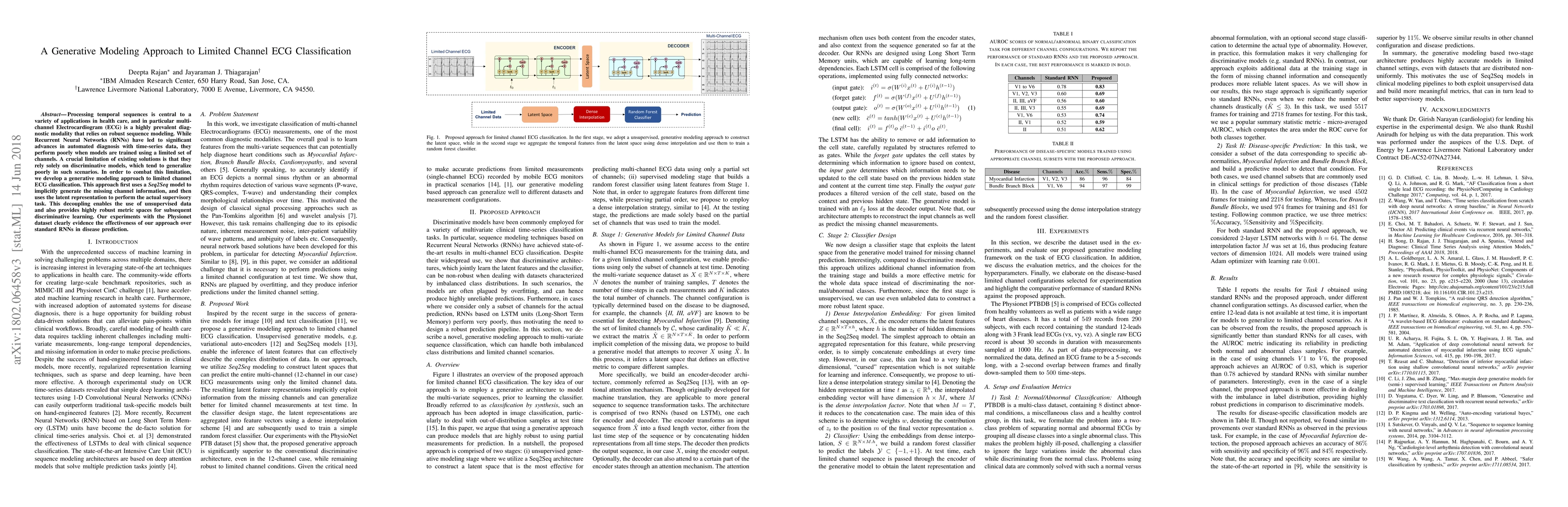 A new approach to limited channel ECG classification uses generative modeling to predict missing channel information, improving performance over traditional Recurrent Neural Networks.