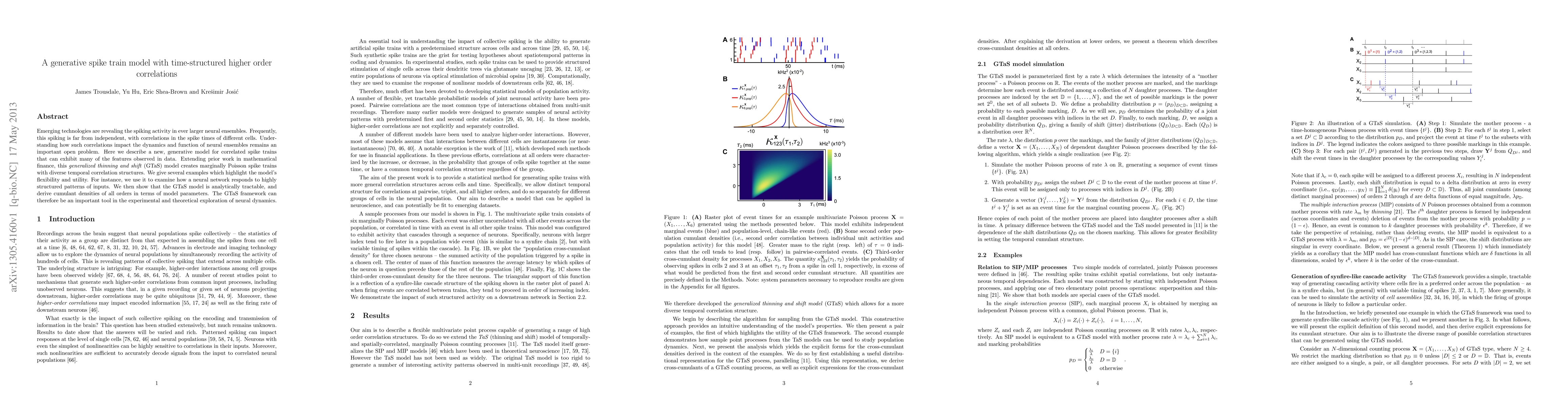 Emerging technologies are revealing the spiking activity in ever larger neural ensembles. Frequently, this spiking is far from independent, with correlations in the spike times of different cells. Understanding how such correlations impact the dynamics and function of neural ensembles remains an important open problem. Here we describe a new, generative model for correlated spike trains that can exhibit many of the features observed in data. Extending prior work in mathematical finance, this generalized thinning and shift (GTaS) model creates marginally Poisson spike trains with diverse temporal correlation structures. We give several examples which highlight the model's flexibility and utility. For instance, we use it to examine how a neural network responds to highly structured patterns of inputs. We then show that the GTaS model is analytically tractable, and derive cumulant densities of all orders in terms of model parameters. The GTaS framework can therefore be an important tool in the experimental and theoretical exploration of neural dynamics.