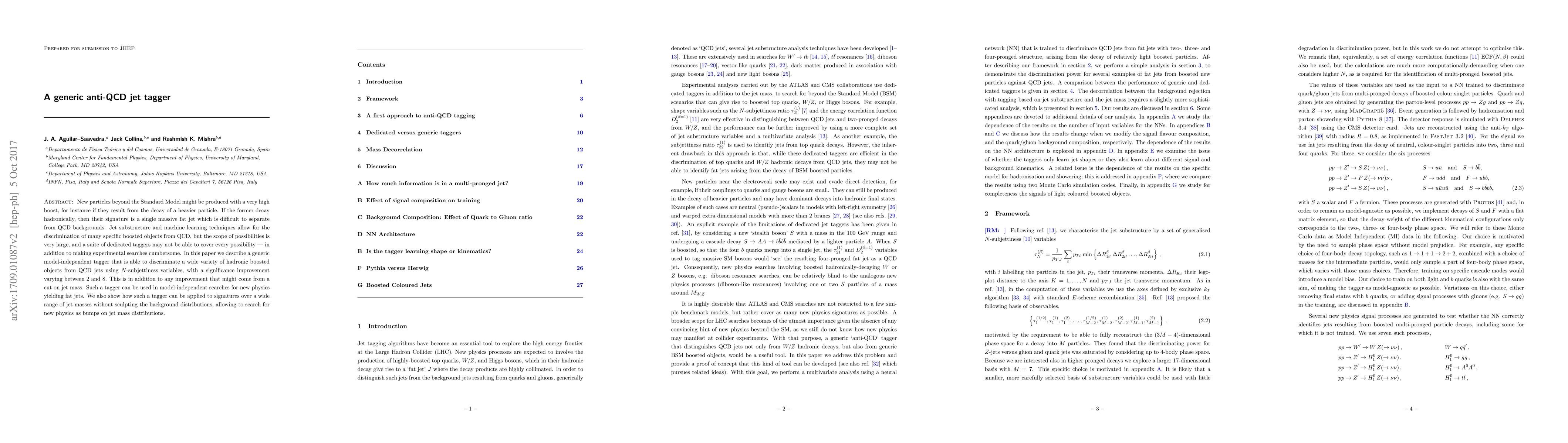 This paper introduces a generic anti-QCD jet tagger that uses N-subjettiness variables and machine learning to distinguish between a wide variety of hadronic boosted objects and QCD jets, improving significance by 2 to 8. This model-independent tagger facilitates searches for new physics in fat jets across diverse jet masses.