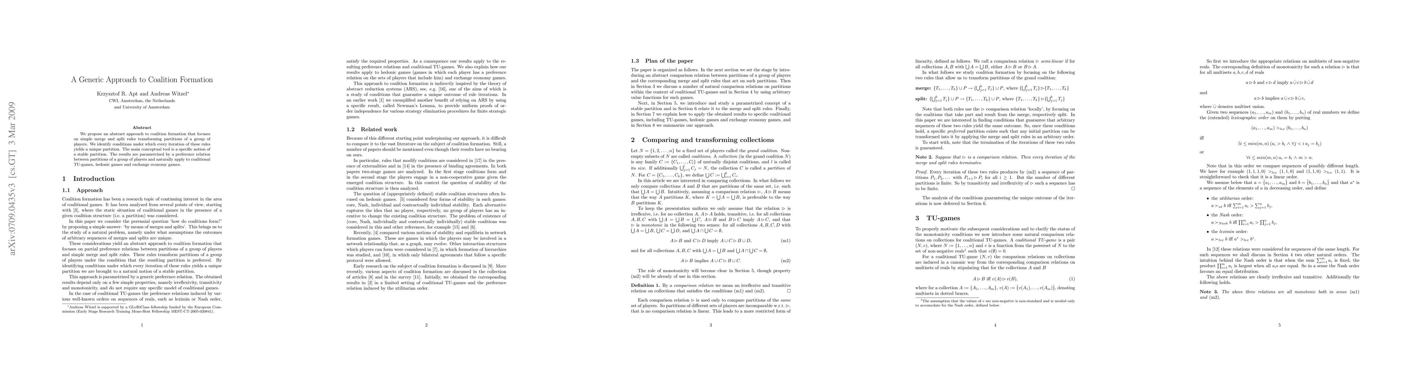 This paper proposes a generic method for coalition formation based on merge and split rules that transform player partitions, ensuring unique outcomes under specific conditions. The approach leverages a stable partition concept and applies broadly to various types of games, including coalitional TU-games, hedonic games, and exchange economy games.