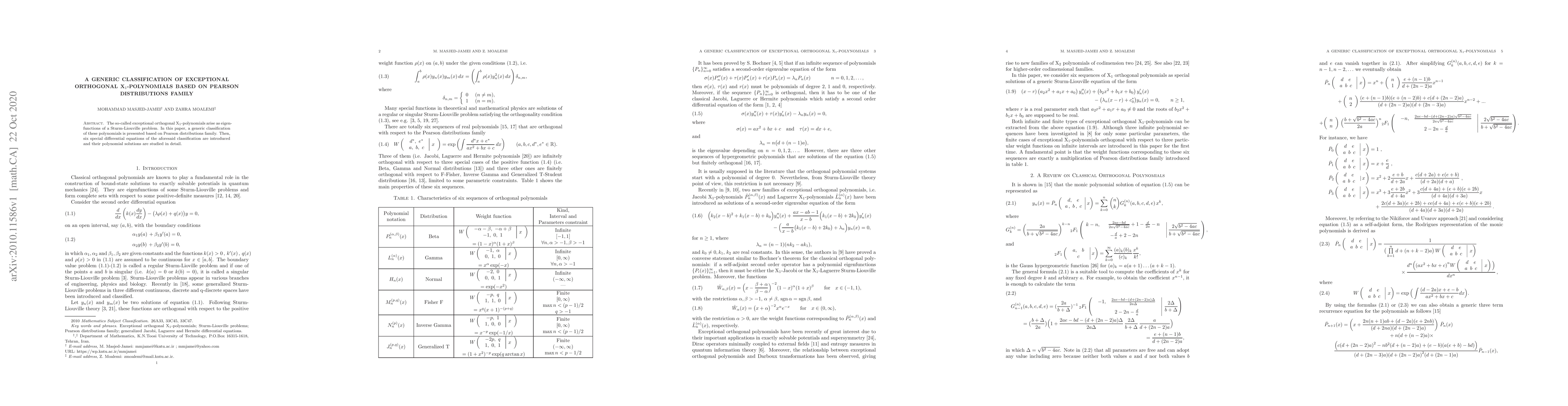 The so-called exceptional orthogonal X1-polynomials arise as eigen functions of a Sturm-Liouville problem. In this paper, a generic classification of these polynomials is presented based on Pearson distributions family. Then, six special differential equations of the aforesaid classification are introduced and their polynomial solutions are studied in detail.