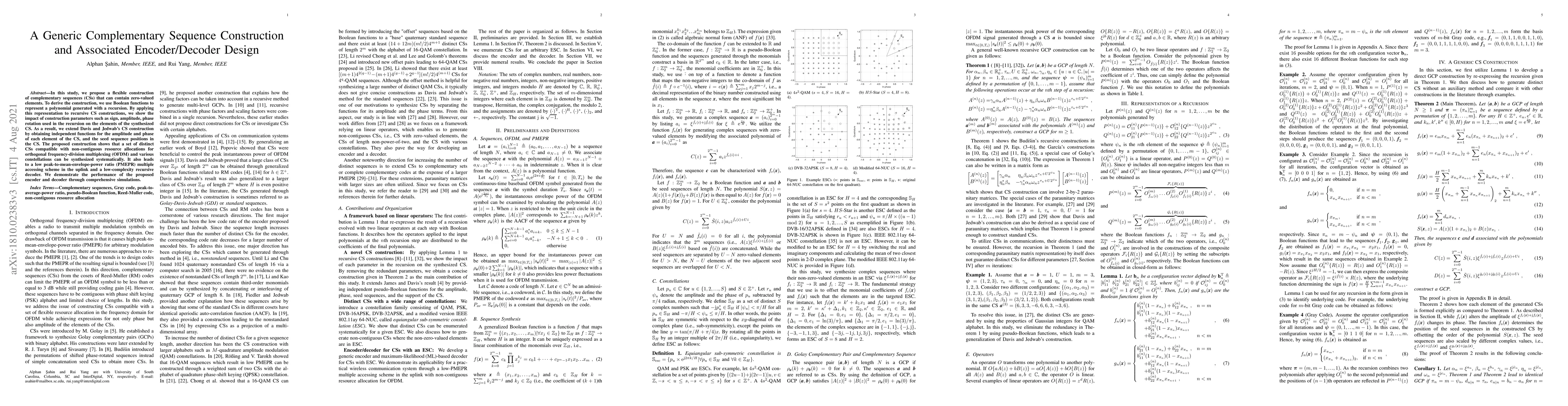 Researchers develop a flexible method to create complementary sequences with adjustable parameters, enabling efficient encoding and decoding in various communication systems. The new construction method results in improved performance and reduced complexity for orthogonal frequency-division multiplexing and constellation-based schemes.