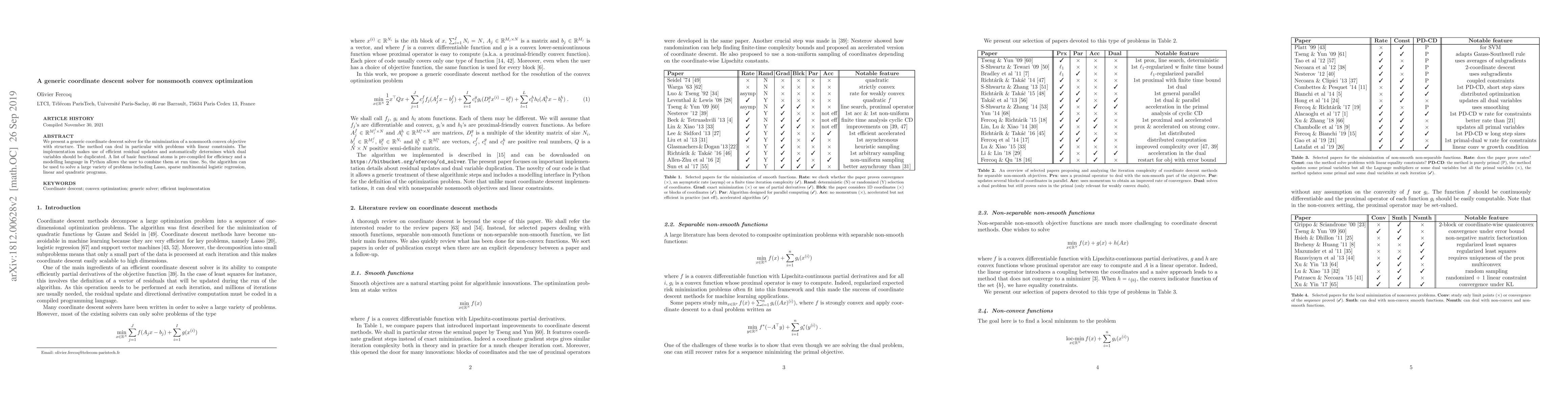 This research paper presents a generic coordinate descent solver for nonsmooth convex optimization problems with linear constraints, allowing efficient solution of diverse applications including Lasso and sparse regression models.