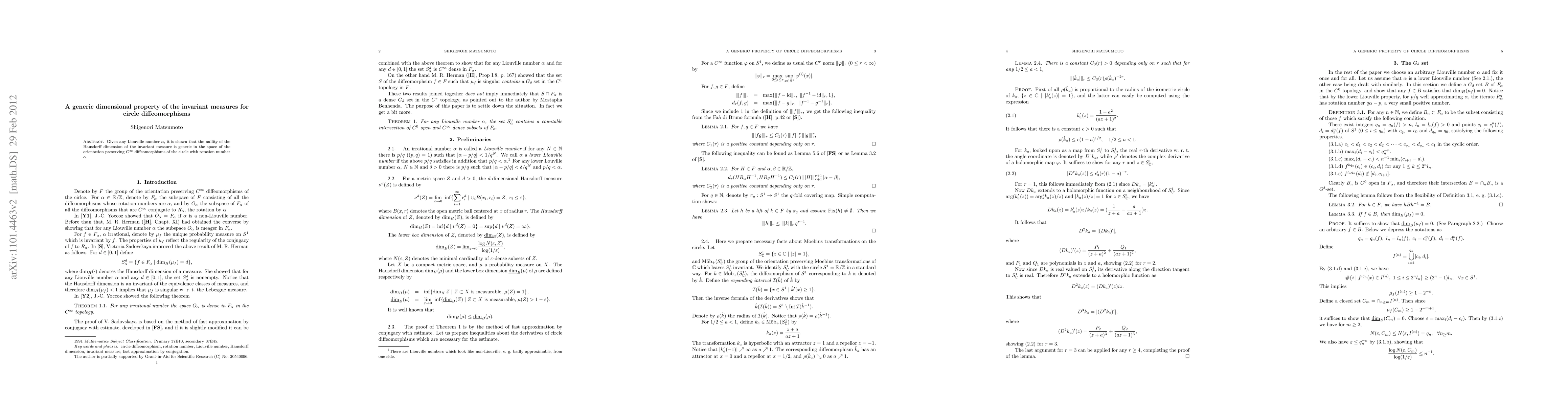 Summary: The research demonstrates that the nullity of the Hausdorff dimension for invariant measures is a generic property among $C^\infty$ circle diffeomorphisms with a specified Liouville number as their rotation number. This finding highlights a fundamental characteristic in the study of dynamical systems on the circle.