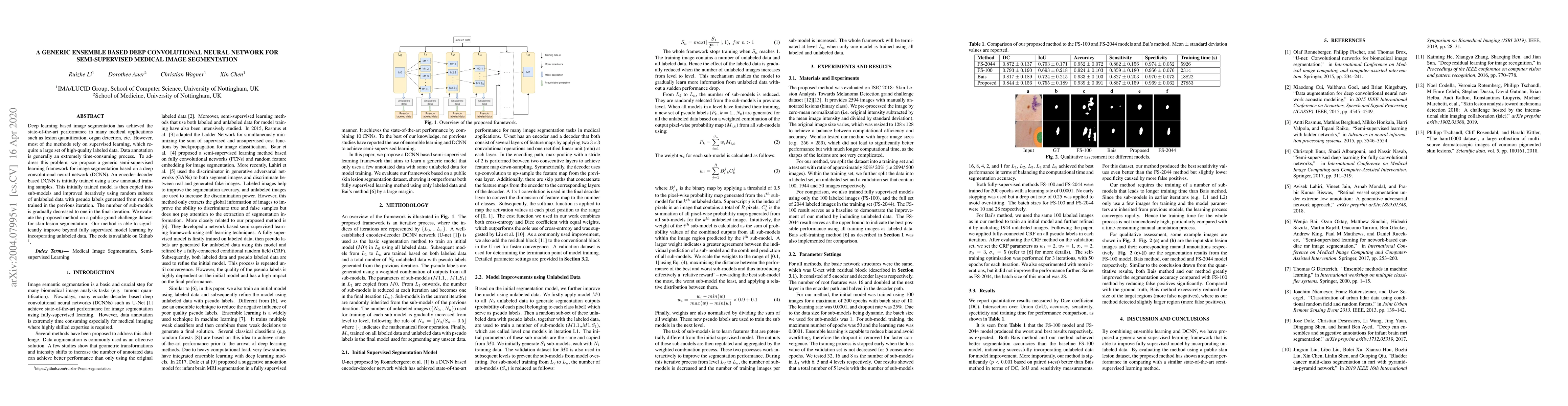 This paper proposes a semi-supervised deep convolutional neural network (DCNN) for medical image segmentation, utilizing a few labeled samples and iteratively improving with unlabeled data to achieve better performance than fully supervised methods. The method is evaluated on a skin lesion segmentation dataset, demonstrating its effectiveness.