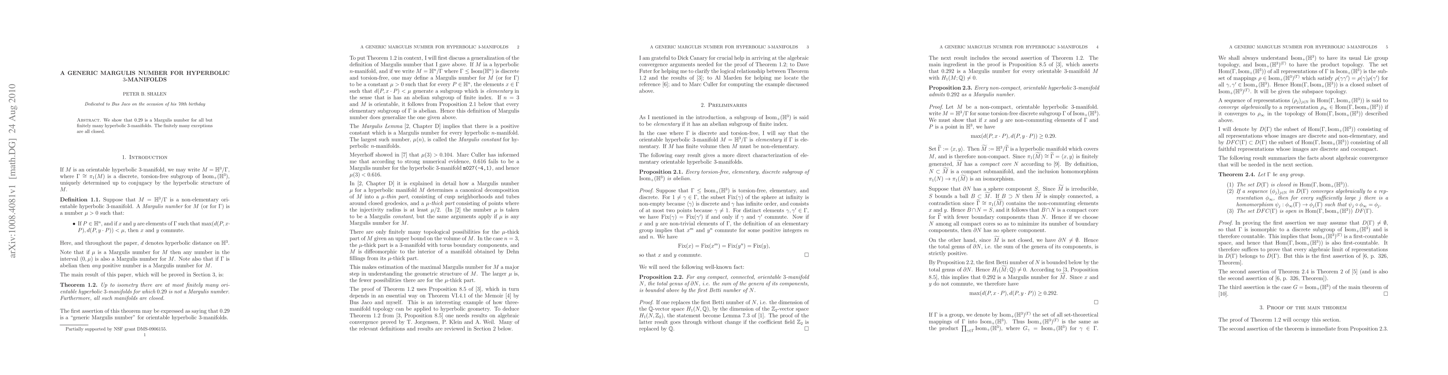 Summary: This paper establishes that 0.29 serves as a universal Margulis number for almost all hyperbolic 3-manifolds, with only a finite set of closed exceptions. This finding provides a significant uniformity in the study of hyperbolic 3-manifolds.