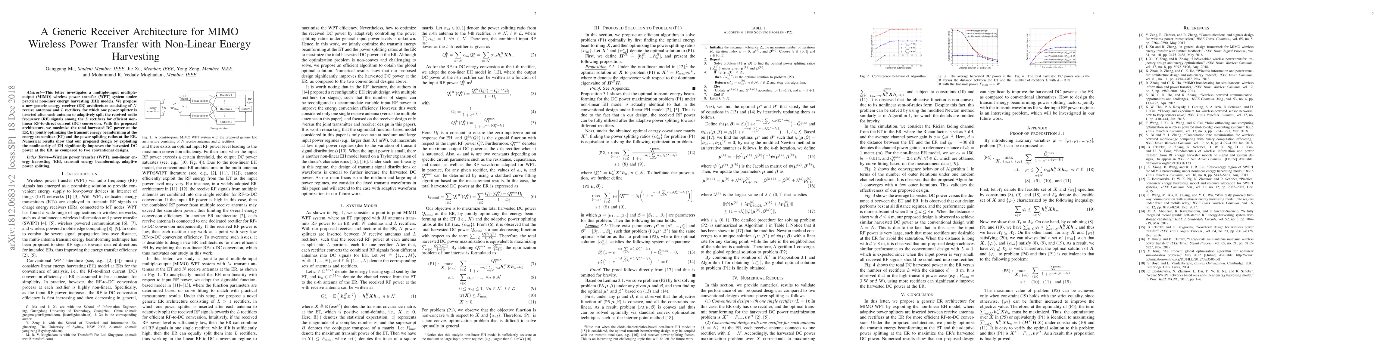 This paper proposes a novel generic receiver architecture for MIMO wireless power transfer systems that incorporates non-linear energy harvesting. The architecture optimizes transmit beamforming and power splitting to maximize harvested DC power, significantly improving efficiency over conventional designs.
