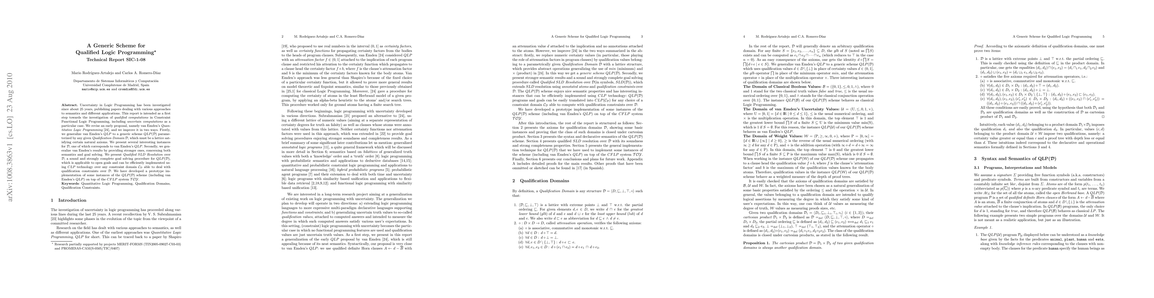 This paper proposes a generic scheme for Qualified Logic Programming (QLP) that generalizes van Emden's Quantitative Logic Programming, parameterizing it by any lattice-based qualification domain. It introduces Qualified SLD Resolution, a sound and complete goal solving procedure applicable to open goals, and demonstrates its implementation in the TOY CFLP system.