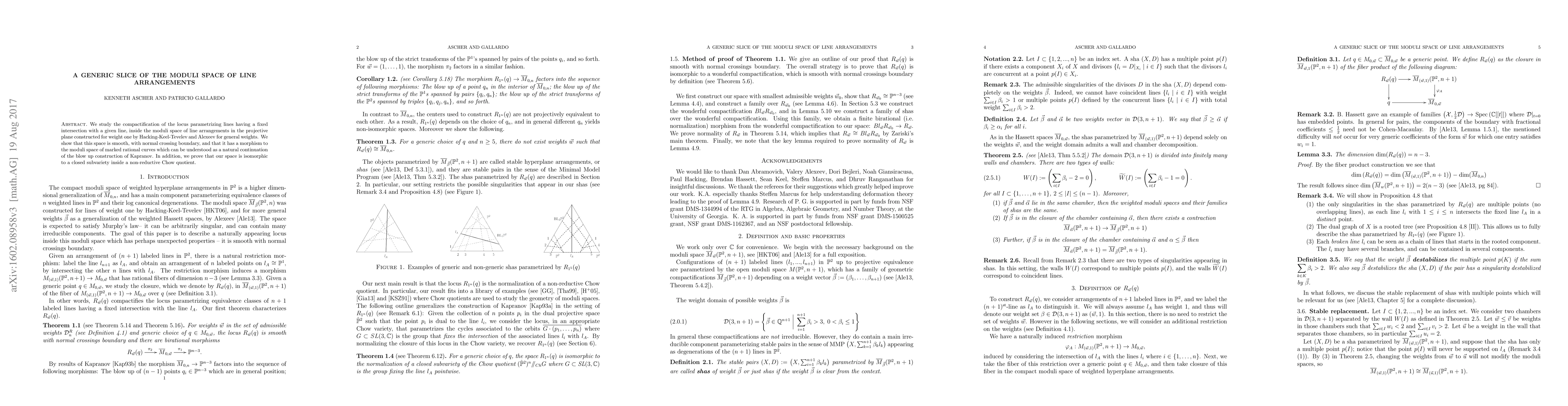 We study the compactification of the locus parametrizing lines with a fixed intersection to a given line, inside the moduli space of line arrangements in the projective plane constructed for weight one by Hacking-Keel-Tevelev and Alexeev for general weights. We show that this space is smooth, with normal crossing boundary, and that it has a morphism to the moduli space of marked rational curves which can be understood as a natural continuation of the blow up construction of Kapranov. In addition, we prove that it is isomorphic to a closed subvariety inside a non-reductive Chow quotient. The parametrized objects are surfaces with broken lines, whose dual graphs are rooted trees with possibly repeated markings.
