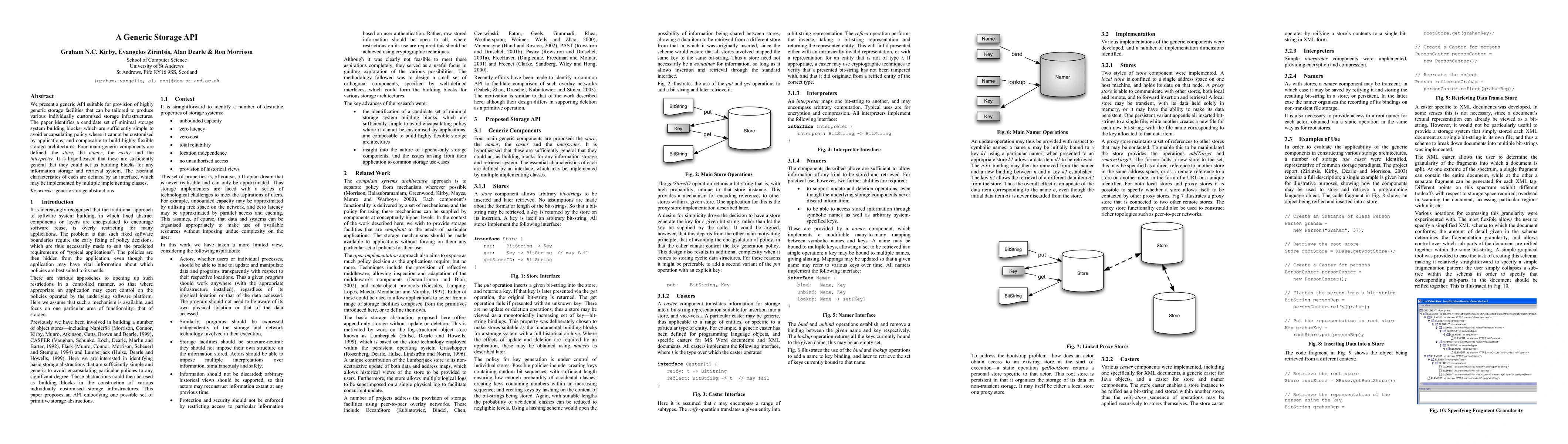 This paper introduces a generic API for customizable storage infrastructures, composed of four main components: store, namer, caster, and interpreter. These components are designed to be simple yet composable, allowing for flexible storage architectures and multiple implementations.