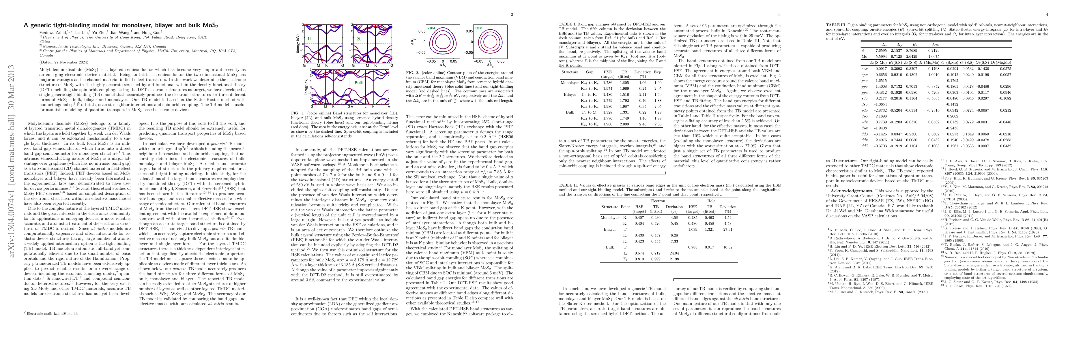 This research develops a generic tight-binding model for monolayer, bilayer, and bulk MoS2 that accurately reproduces the electronic structure derived from DFT calculations, facilitating quantum transport studies in MoS2-based electronic devices. The model incorporates spin-orbit coupling and is based on non-orthogonal sp3d5 orbitals.