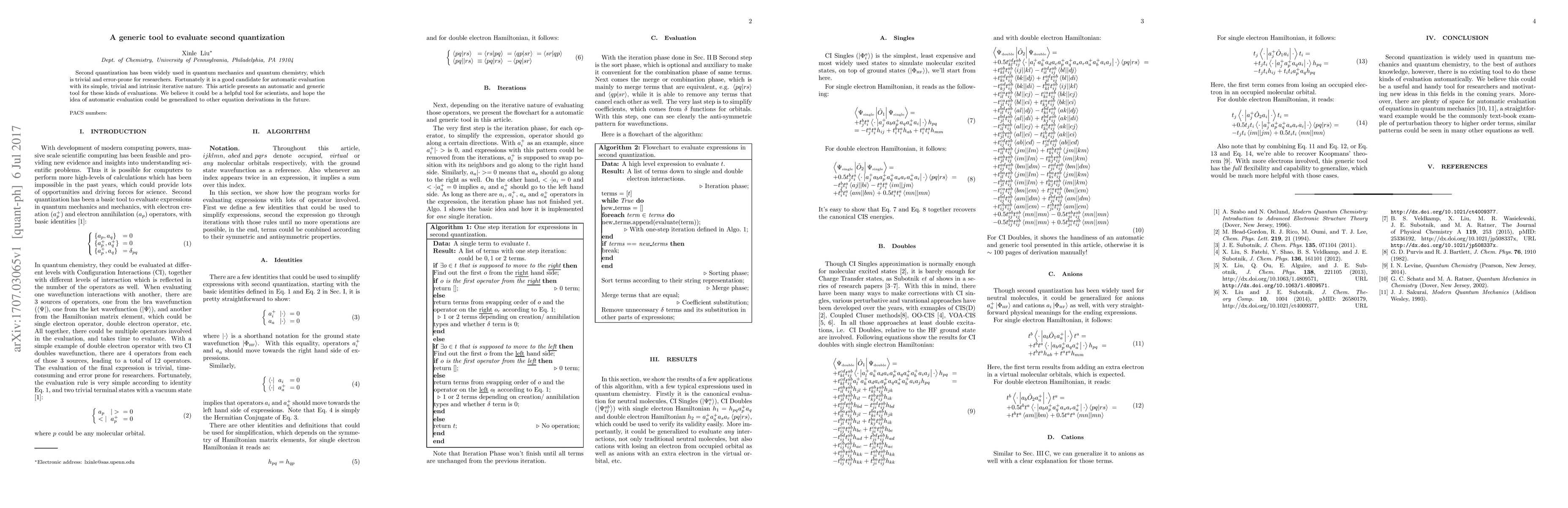 Second quantization has been widely used in quantum mechanics and quantum chemistry, which is trivial and error-prone for researchers. Fortunately it is a good candidate for automatic evaluation with its simple, trivial and intrinsic iterative nature. This article presents an automatic and generic tool for these kinds of evaluations. We believe it could be a helpful tool for scientists, and hope the idea of automatic evaluation could be generalized to other equation derivations in the future.