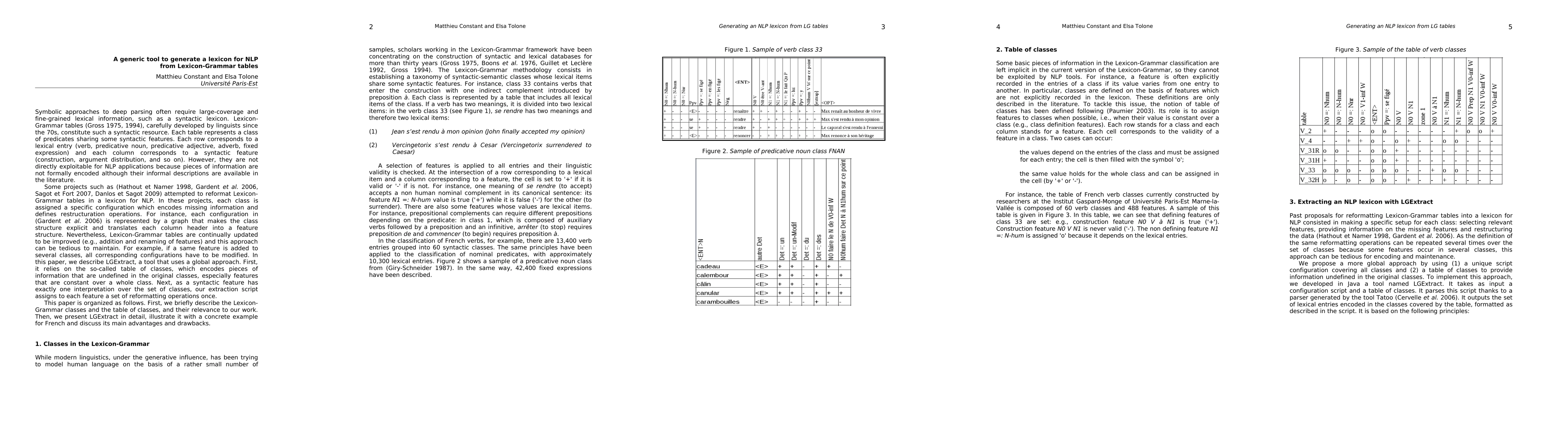 This paper introduces LGExtract, a tool that converts Lexicon-Grammar tables into a usable syntactic lexicon for NLP, addressing implicit information issues. An experiment demonstrates its effectiveness by generating a new French verb and predicative noun lexicon.