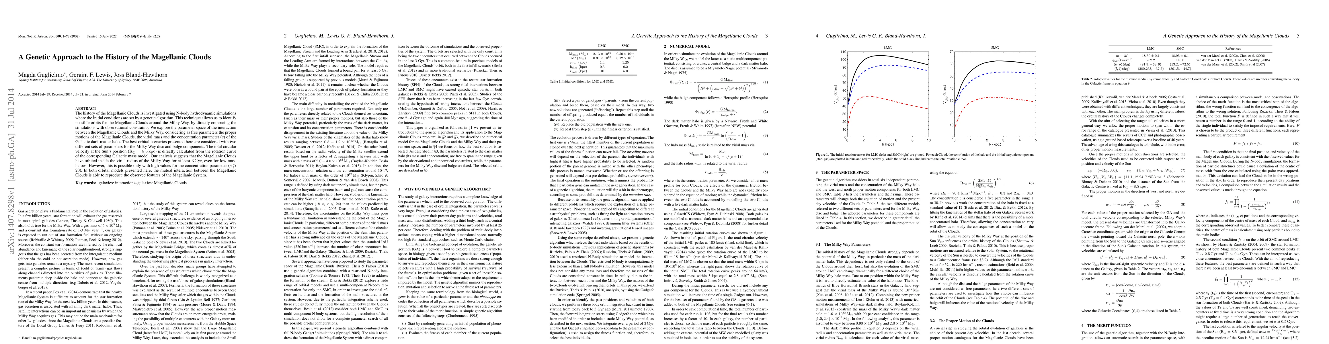 This paper uses genetic algorithms to simulate the history of the Magellanic Clouds around the Milky Way, finding that they have likely orbited within the Milky Way's virial radius for at least 3 Gyr, especially with high concentration parameters of the Galactic dark matter halo. The mutual interaction between the Clouds can reproduce observed features of the Magellanic System.