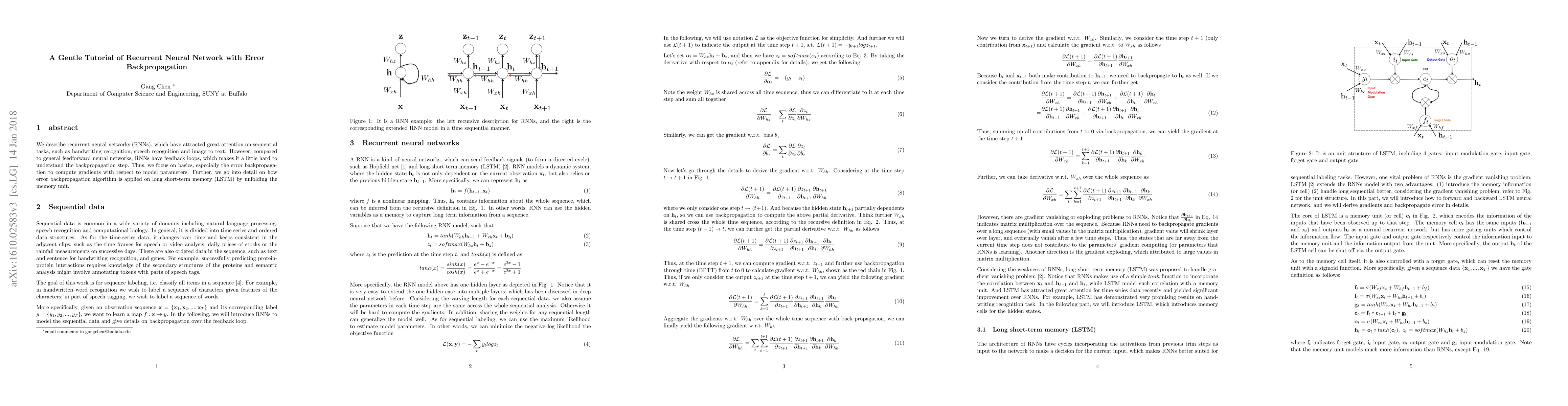 While the fundamentals of RNNs and LSTM are not new, this paper offers a gentle, detailed tutorial that simplifies the complex process of error backpropagation in RNNs, making it accessible to a broader audience.