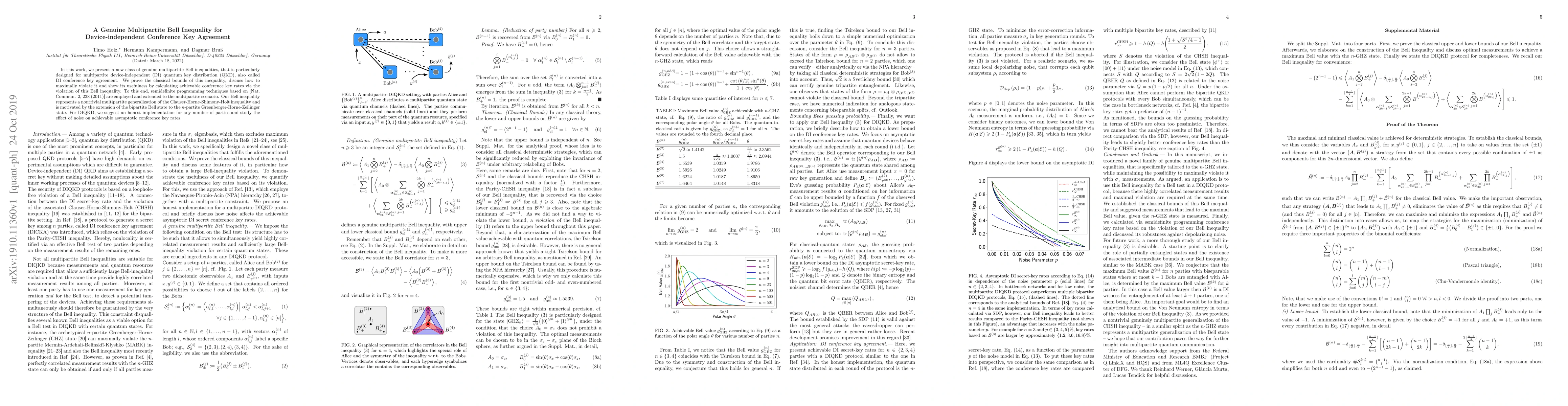 This paper introduces a new class of genuine multipartite Bell inequalities tailored for device-independent quantum key distribution (DI QKD) in multipartite settings. It establishes classical bounds, discusses maximal violations, and calculates achievable conference key rates using extended semidefinite programming techniques.