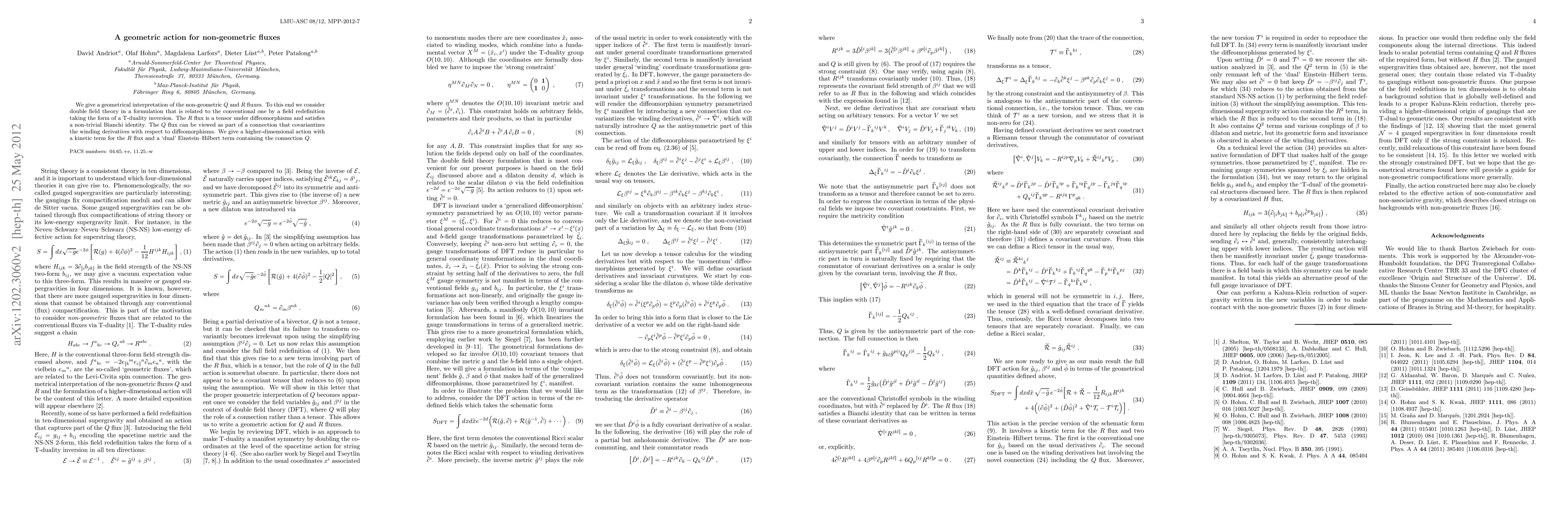 We give a geometrical interpretation of the non-geometric Q and R fluxes. To this end we consider double field theory in a formulation that is related to the conventional one by a field redefinition taking the form of a T-duality inversion. The R flux is a tensor under diffeomorphisms and satisfies a non-trivial Bianchi identity. The Q flux can be viewed as part of a connection that covariantizes the winding derivatives with respect to diffeomorphisms. We give a higher-dimensional action with a kinetic term for the R flux and a 'dual' Einstein-Hilbert term containing the connection Q.