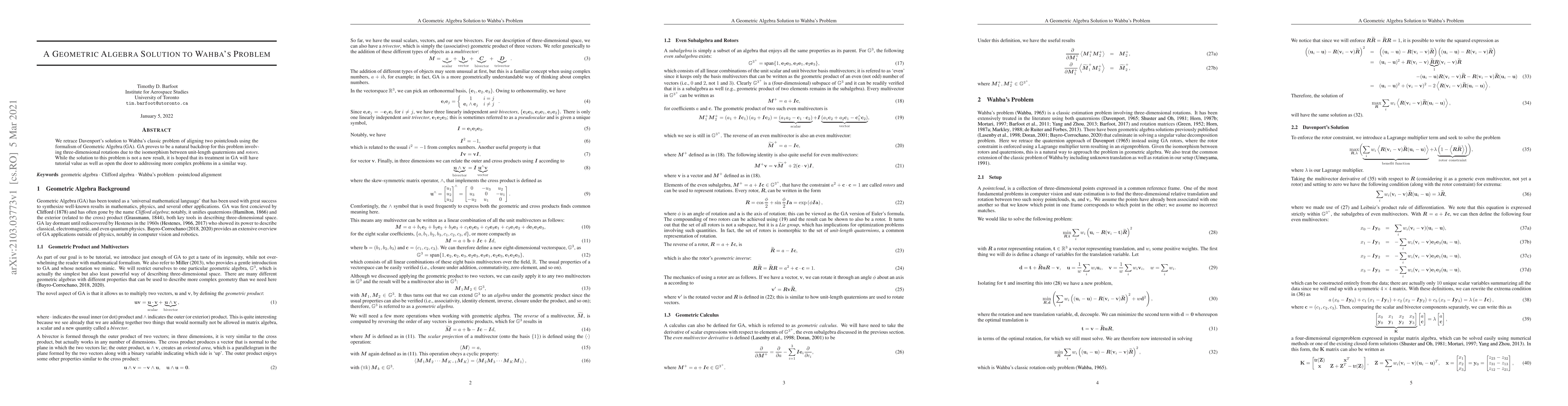 We retrace Davenport's solution to Wahba's classic problem of aligning two pointclouds using the formalism of Geometric Algebra (GA). GA proves to be a natural backdrop for this problem involving three-dimensional rotations due to the isomorphism between unit-length quaternions and rotors. While the solution to this problem is not a new result, it is hoped that its treatment in GA will have tutorial value as well as open the door to addressing more complex problems in a similar way.