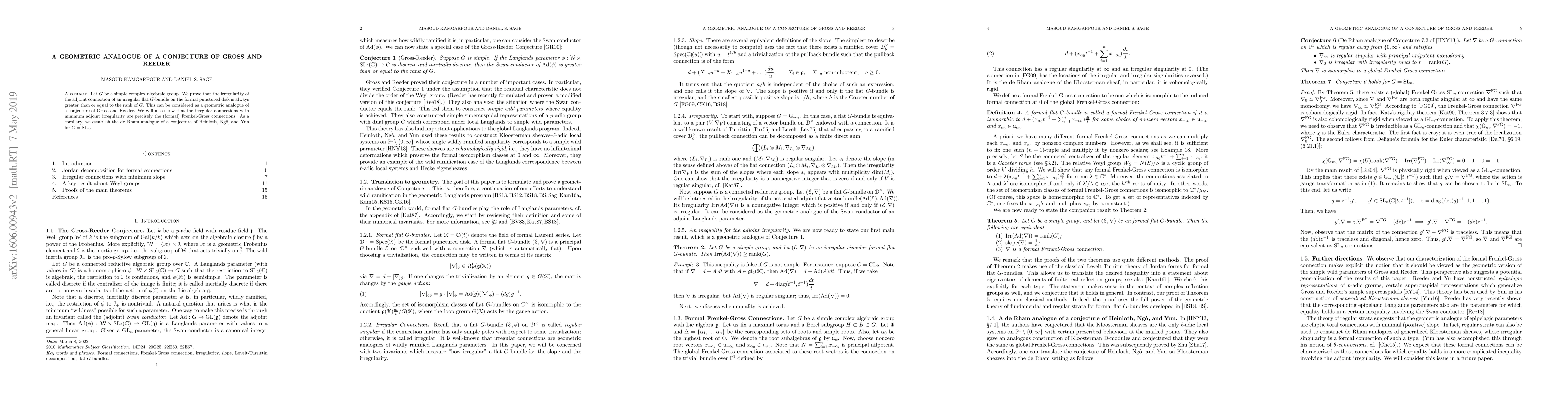 Let G be a simple complex algebraic group. We prove that the irregularity of the adjoint connection of an irregular flat G-bundle on the formal punctured disk is always greater than or equal to the rank of G. This can be considered as a geometric analogue of a conjecture of Gross and Reeder. We will also show that the irregular connections with minimum adjoint irregularity are precisely the (formal) Frenkel-Gross connections.