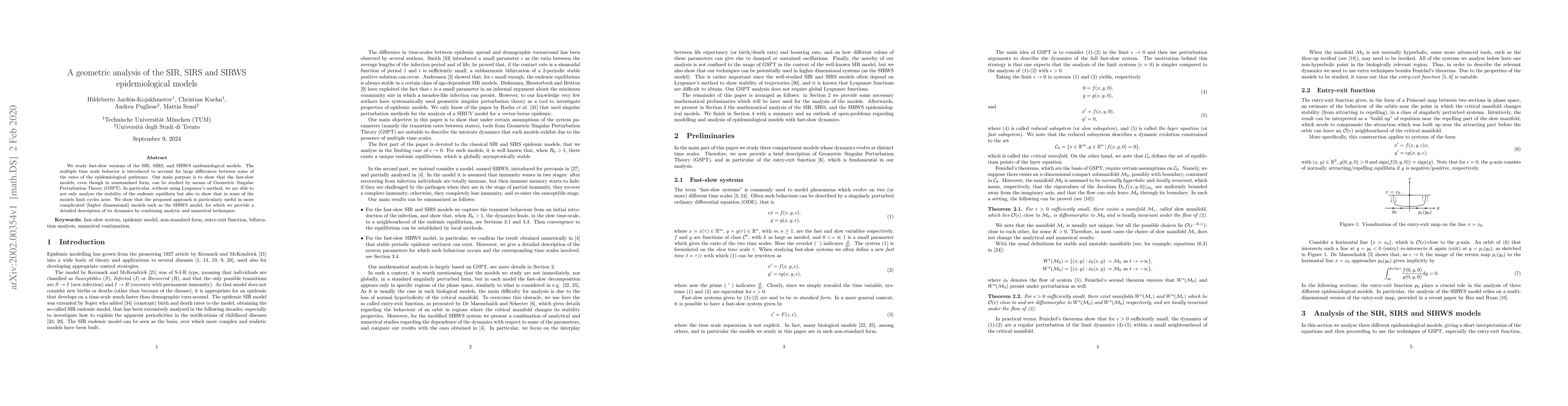 This paper employs Geometric Singular Perturbation Theory (GSPT) to analyze fast-slow versions of SIR, SIRS, and SIRWS epidemiological models, revealing stability of endemic equilibria and the emergence of limit cycles without relying on Lyapunov's method. The study highlights GSPT's utility in complex, higher-dimensional models like SIRWS.
