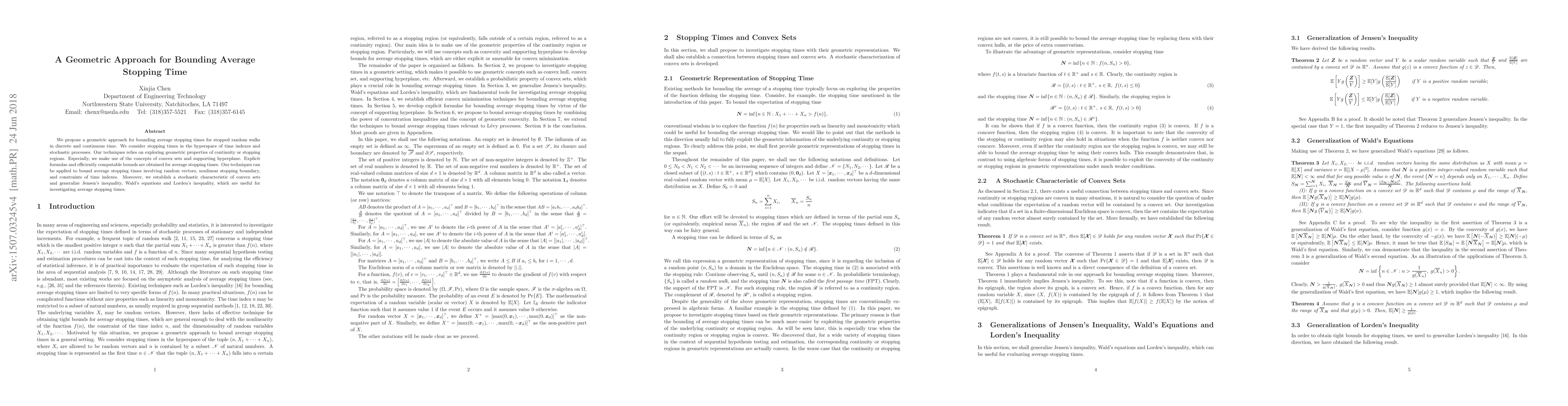 A new geometric approach is proposed to bound average stopping times for stopped random walks in both discrete and continuous time, using concepts like convex sets and supporting hyperplanes.