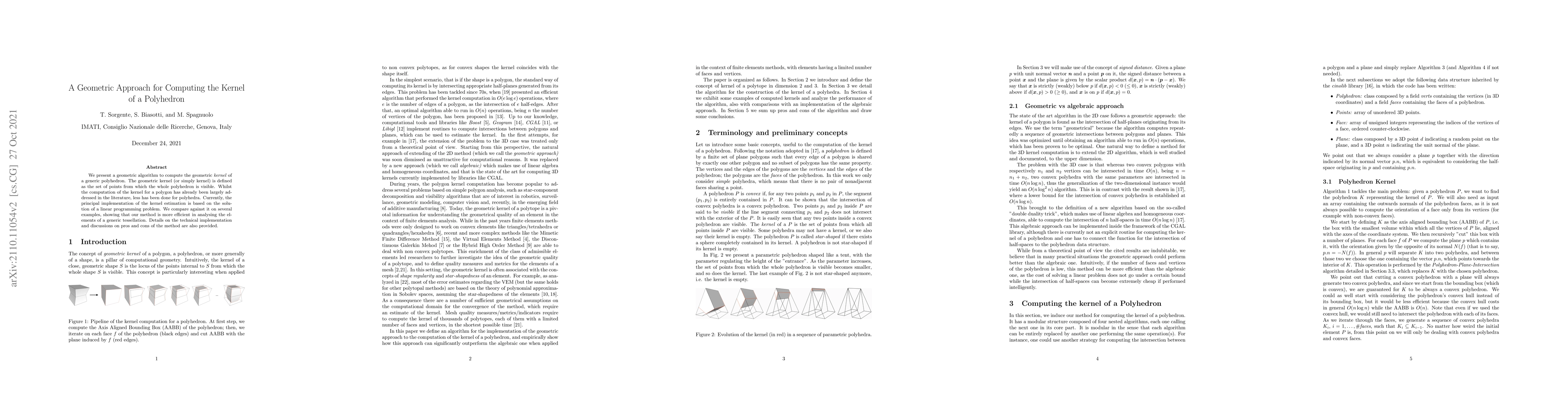 Researchers developed a geometric algorithm to compute the kernel of a polyhedron, which is the set of points from which the whole polyhedron is visible, offering a more efficient method than existing linear programming-based solutions.