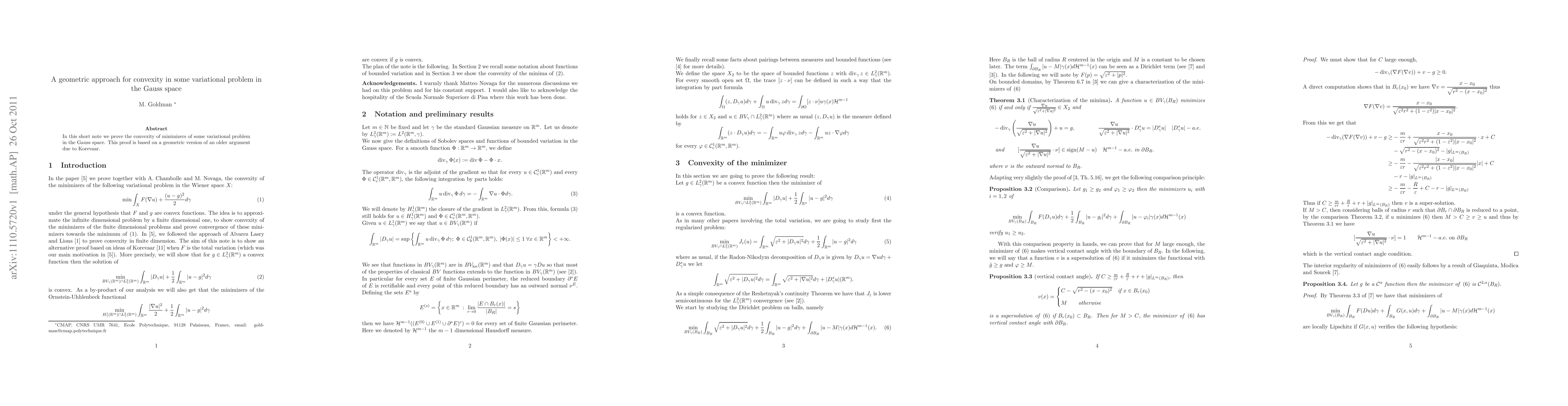 In this short note we prove the convexity of minimizers of some variational problem in the Gauss space. This proof is based on a geometric version of an older argument due to Korevaar.