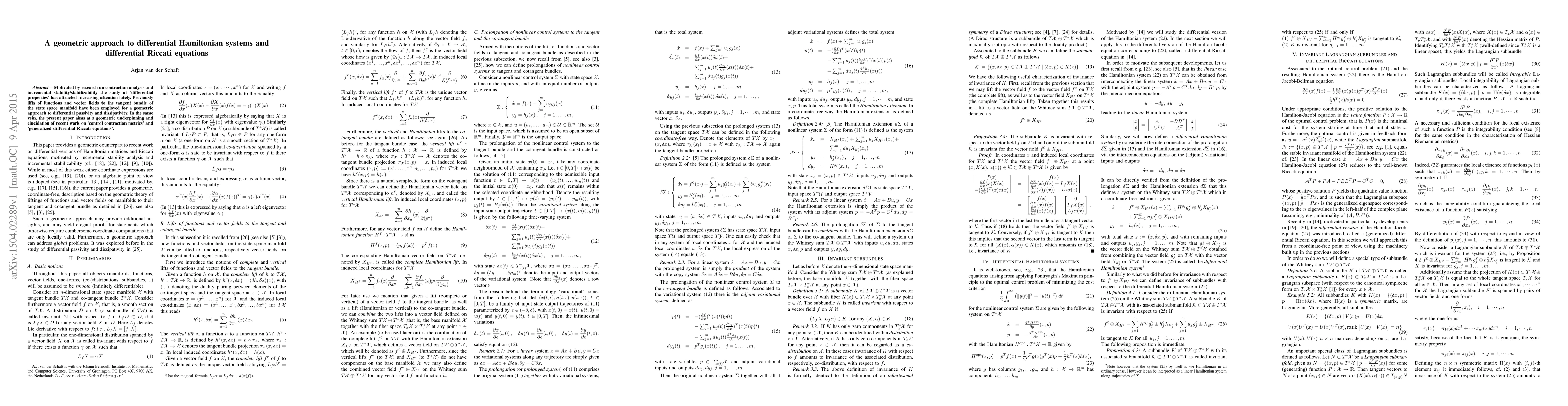 This paper proposes a geometric framework for understanding differential Hamiltonian systems and generalized differential Riccati equations, building on previous work on control contraction metrics and incremental stability. The approach leverages lifts of functions and vector fields to the tangent bundle for a deeper analysis of differential properties.